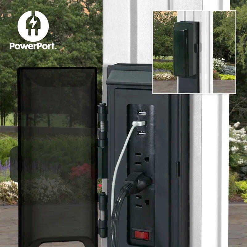 This newest state-of-the-art addition to our patio collection is a Classic Brown Finish. Our powder-coated, galvanized steel construction makes the Ashford pergola maintenance-free and rust-resistant while offering protection against chipping, scratching, corrosion, and UV harm. This preserves the classically inspired appearance of a traditional outdoor structure design with modern, durable steel composition. Backed by a 5-year limited warranty, our high-quality steel pergolas provide market-leading strength and durability in comparison to aluminum or vinyl outdoor shade products. Offered in 3 sizes, the Ashford steel pergola provides up to 120 sq. ft. of shade and plenty of room for furniture, fire pits, and entertaining. The exclusive Power. Port has 3 USB ports and 3 electrical outlets to use for powering outdoor lights and electronics as well as charging your devices. If you have been searching for a strong, weather-resistant, traditional-styled pergola, look no further.