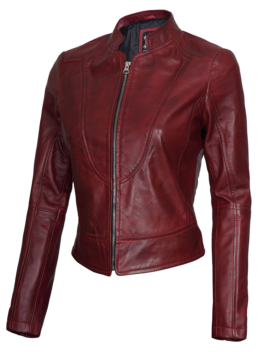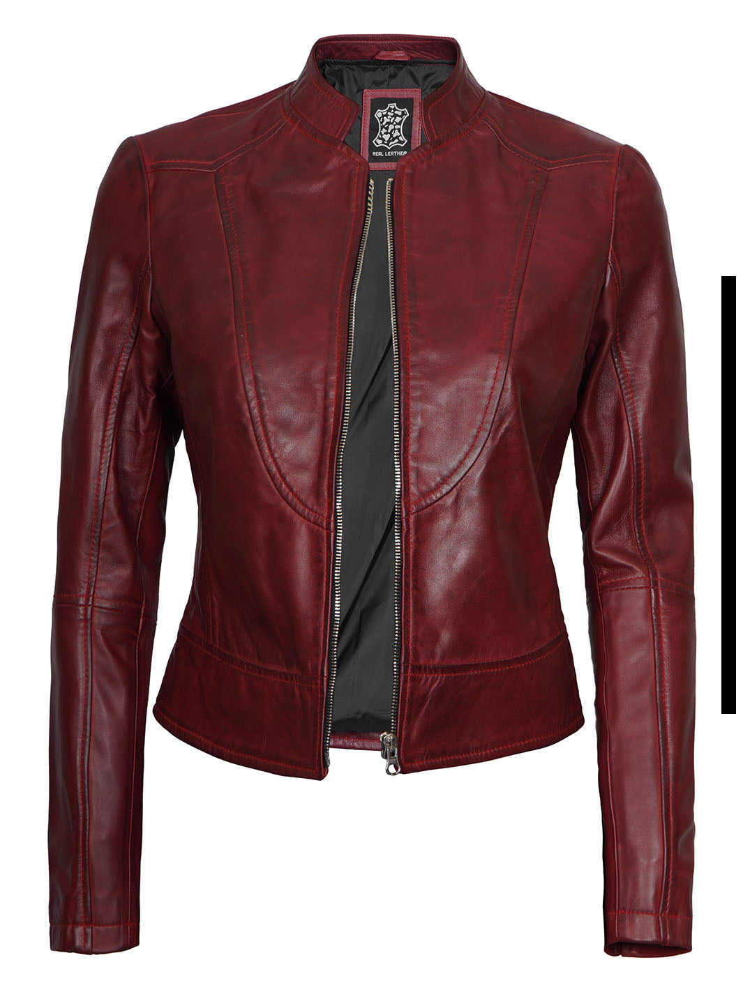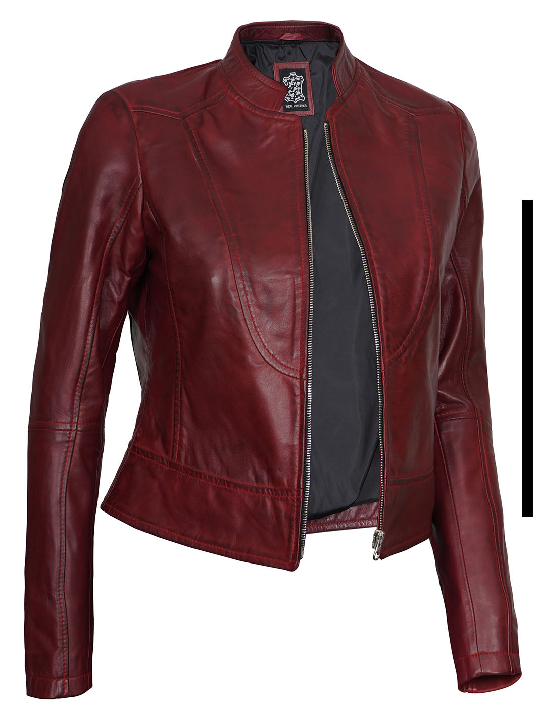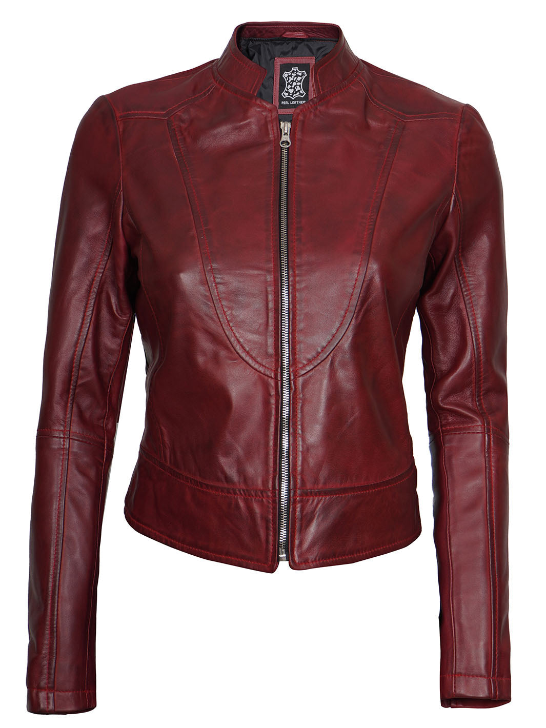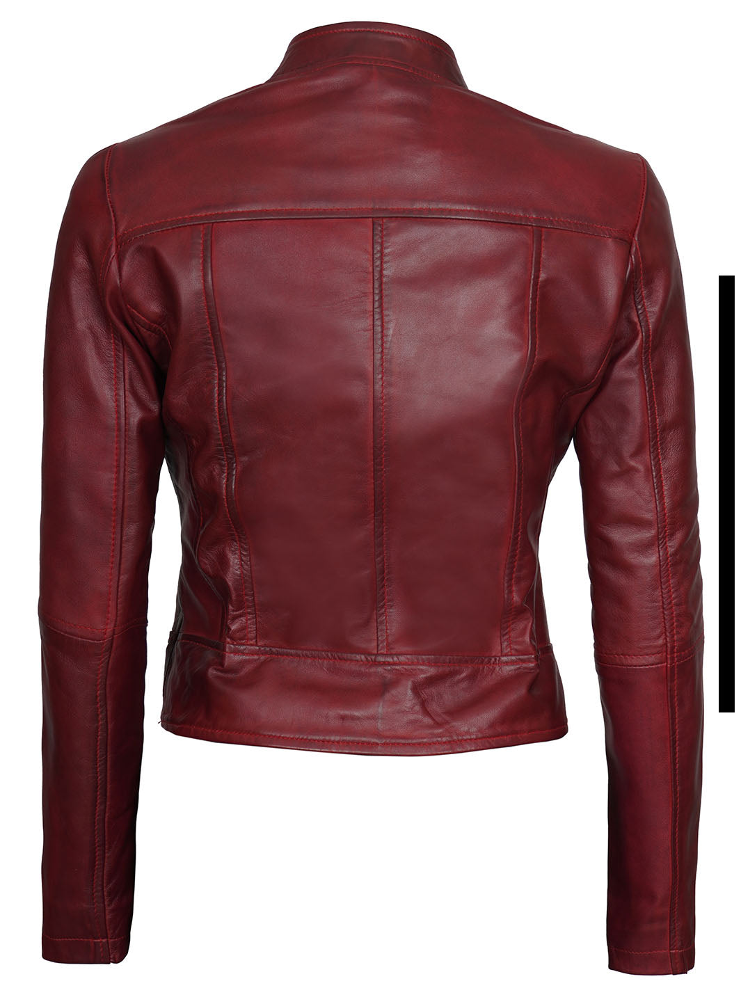 Amy Womens Maroon Cafe Racer Leather Jacket