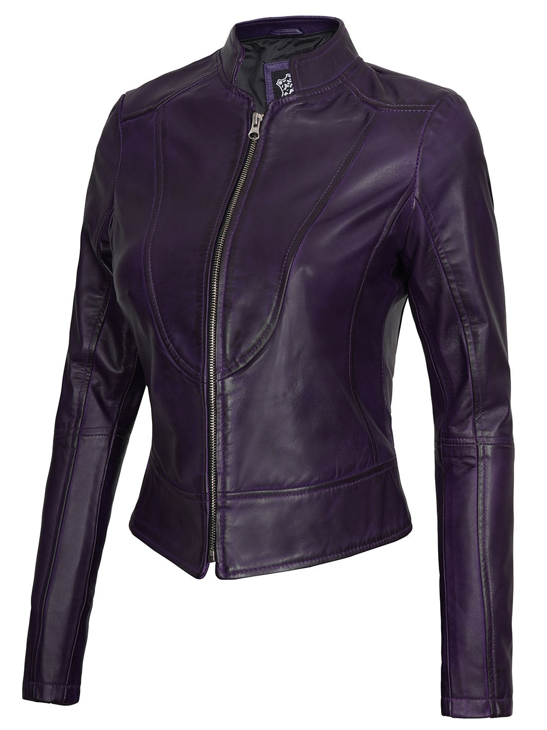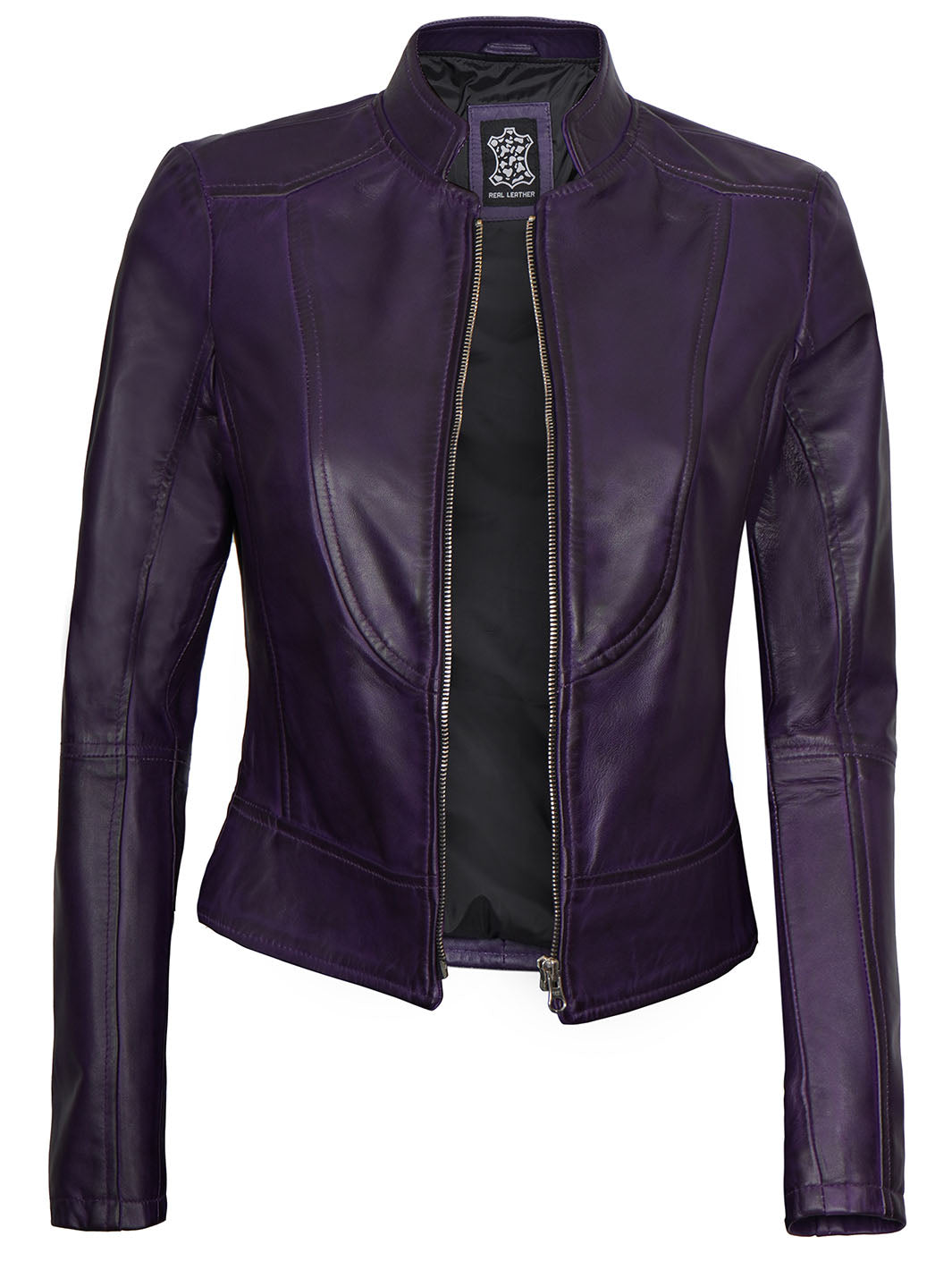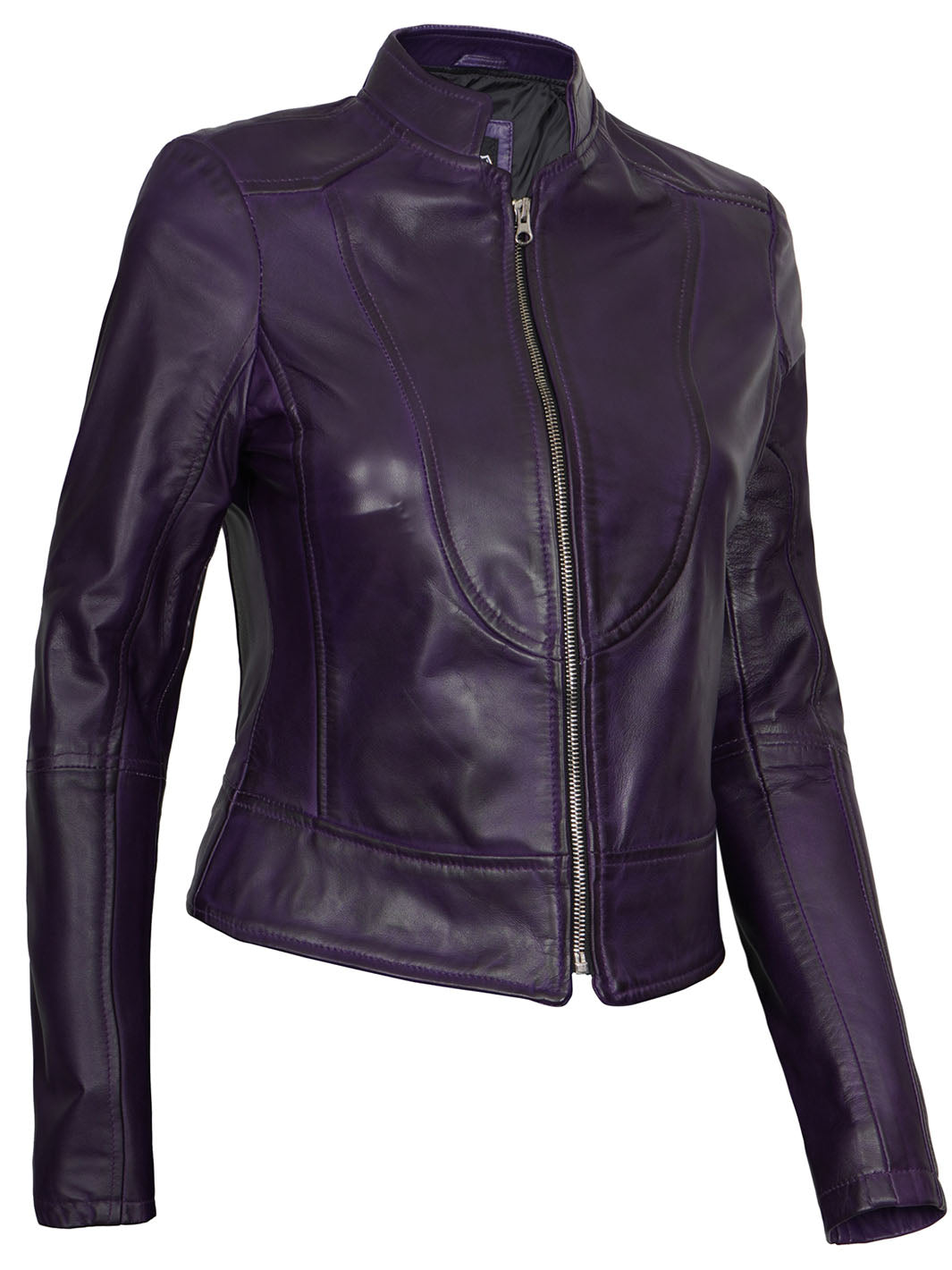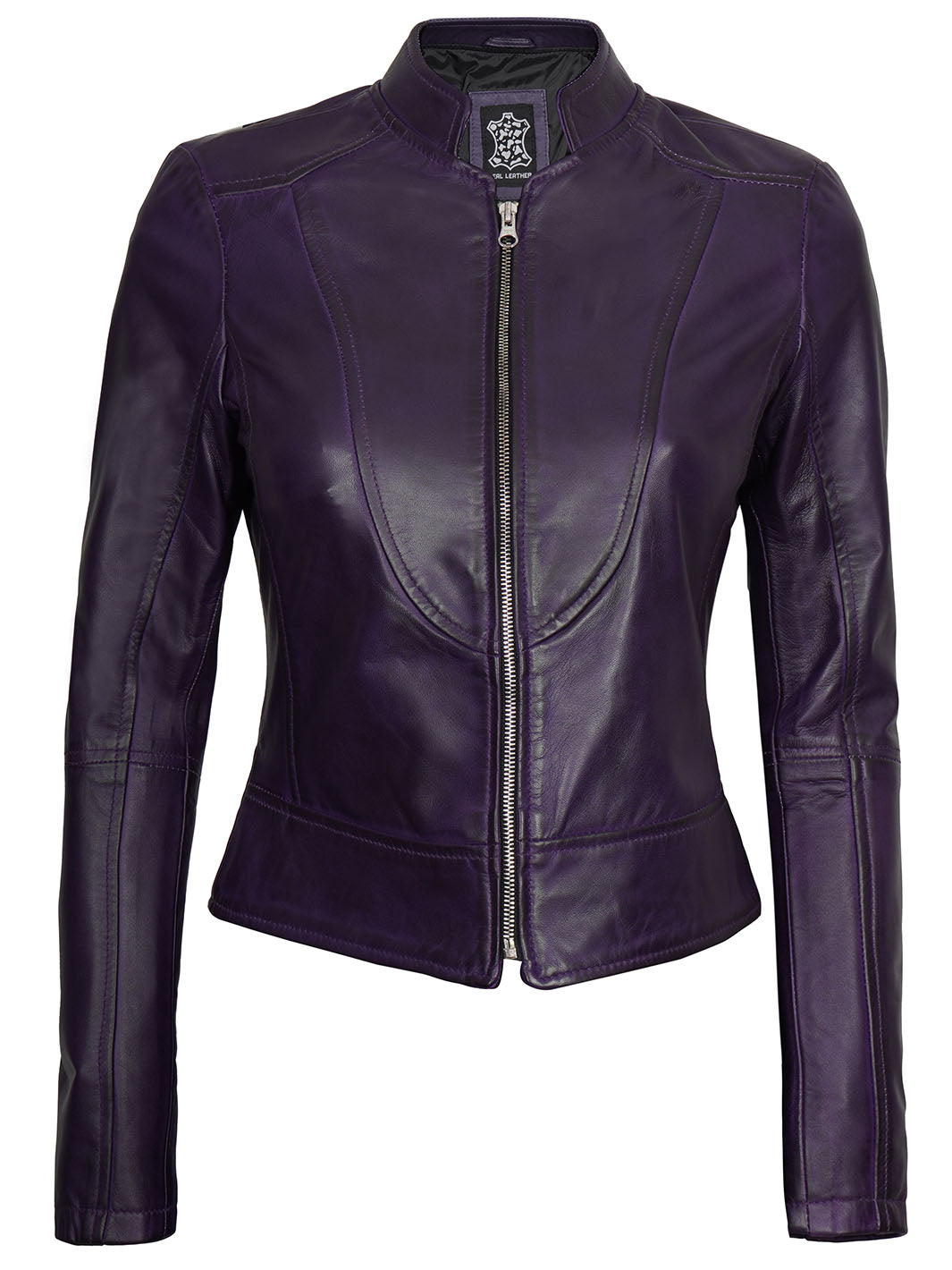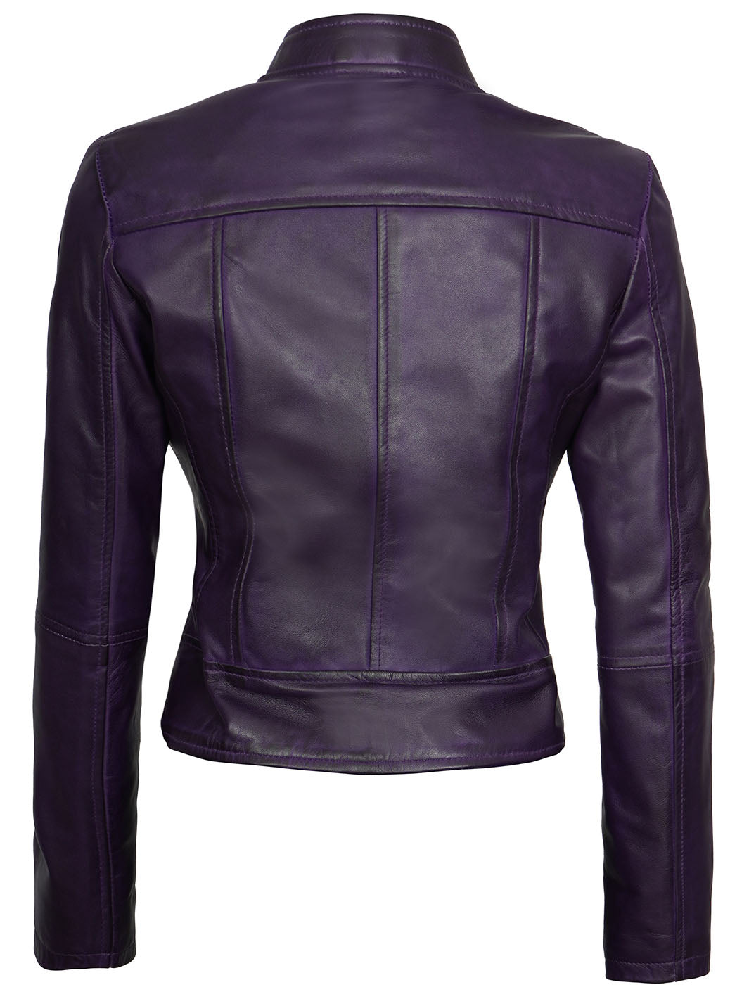 Amy Womens Cafe Racer Fitted Purple Leather Jacket