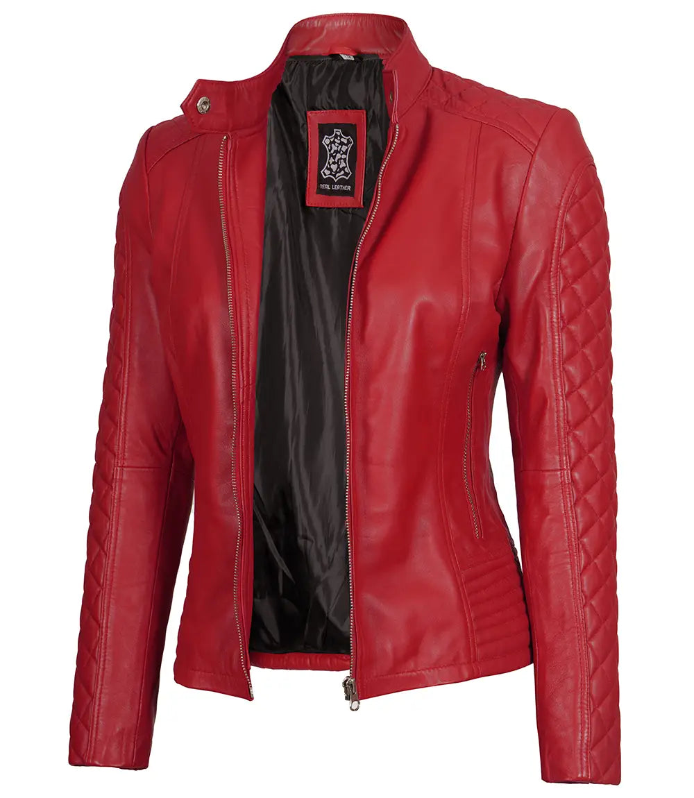 Discover our Women Red Quilted Cafe Racer Leather Jacket – high-quality leather, unique design, stylish cafe racer collar. A must-have for any fashion-forward woman, it offers the perfect blend of style and comfort.