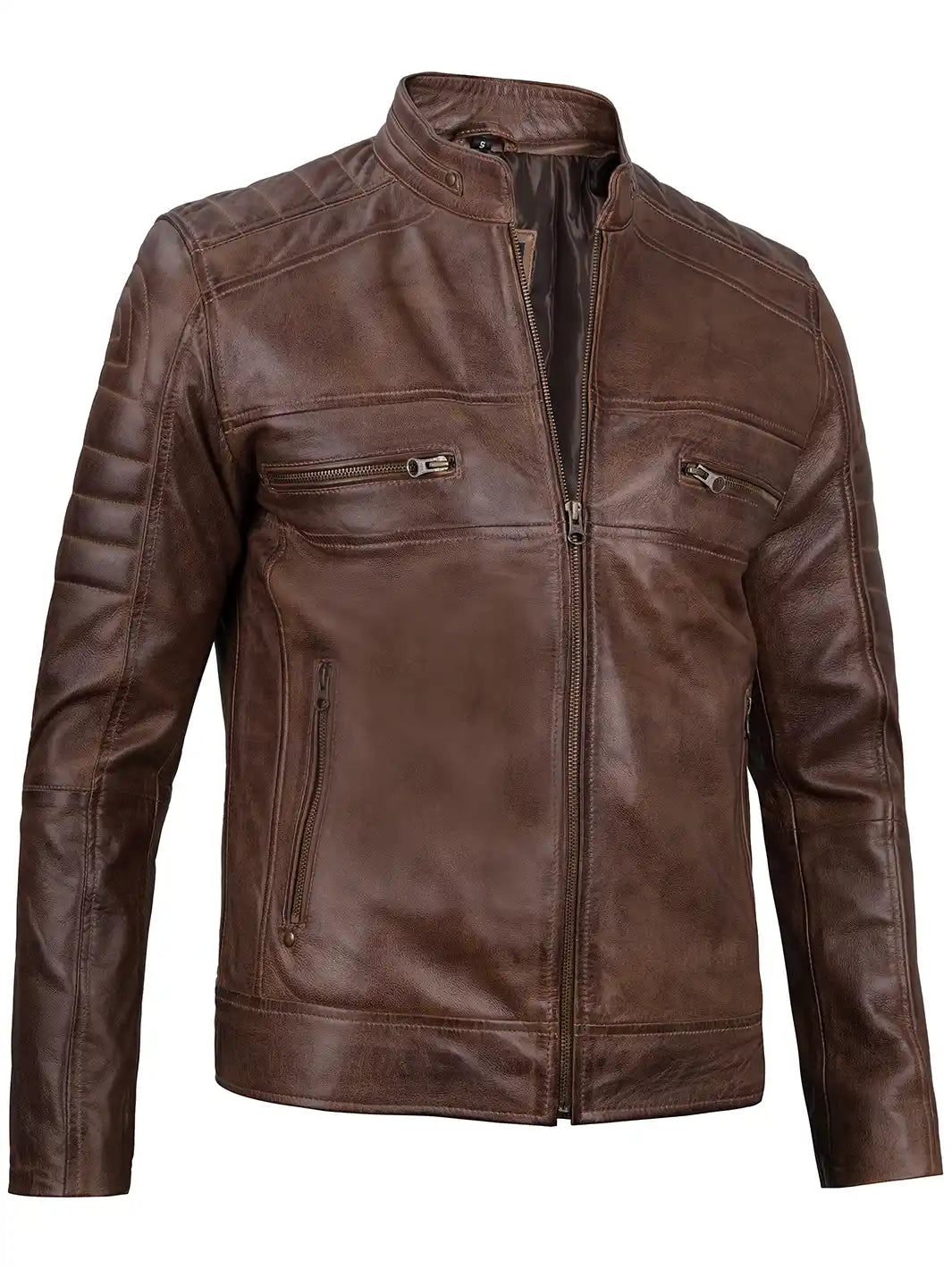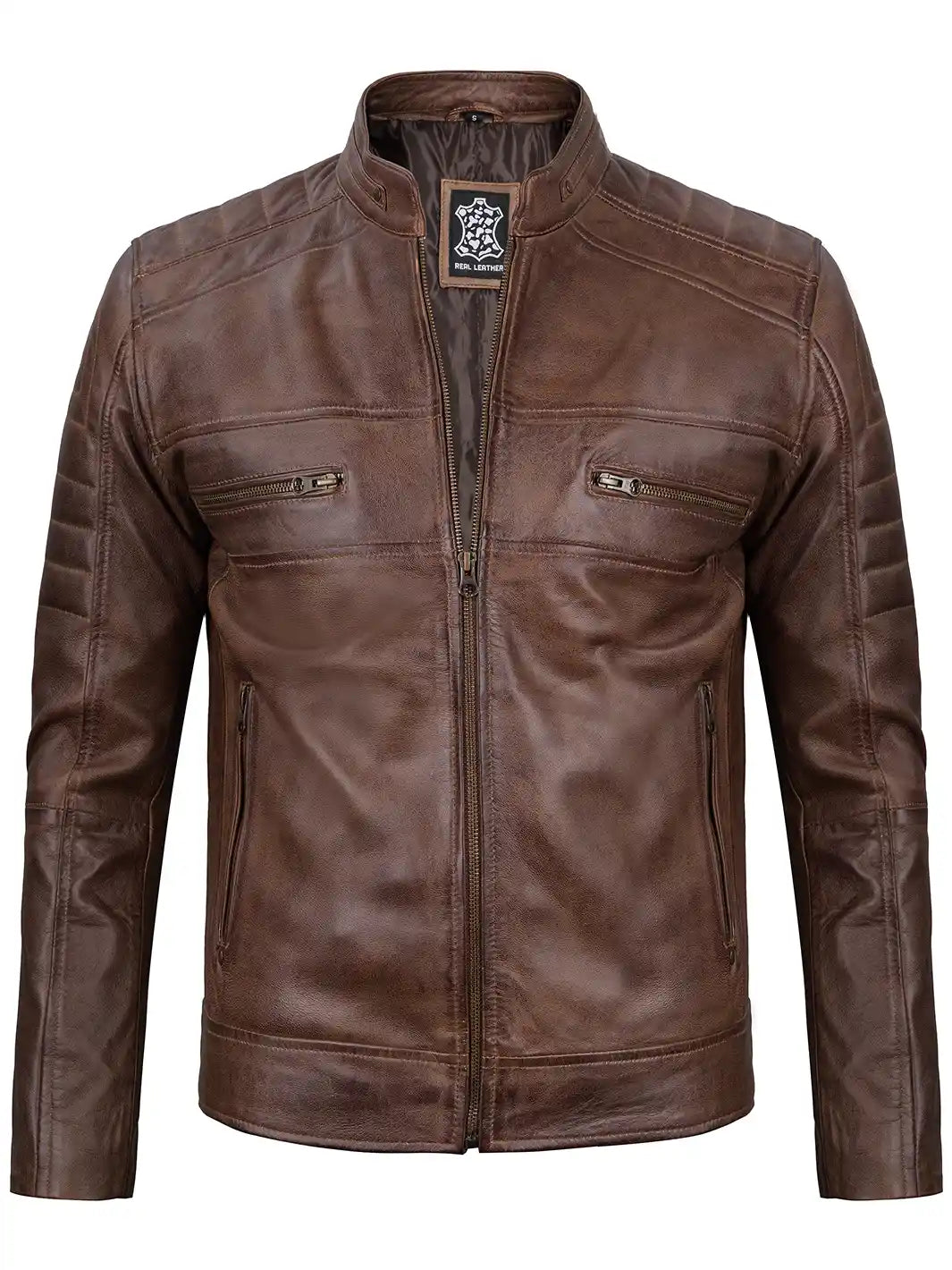 Austin Distressed Coffee Brown Cafe Racer Leather Jacket for Men