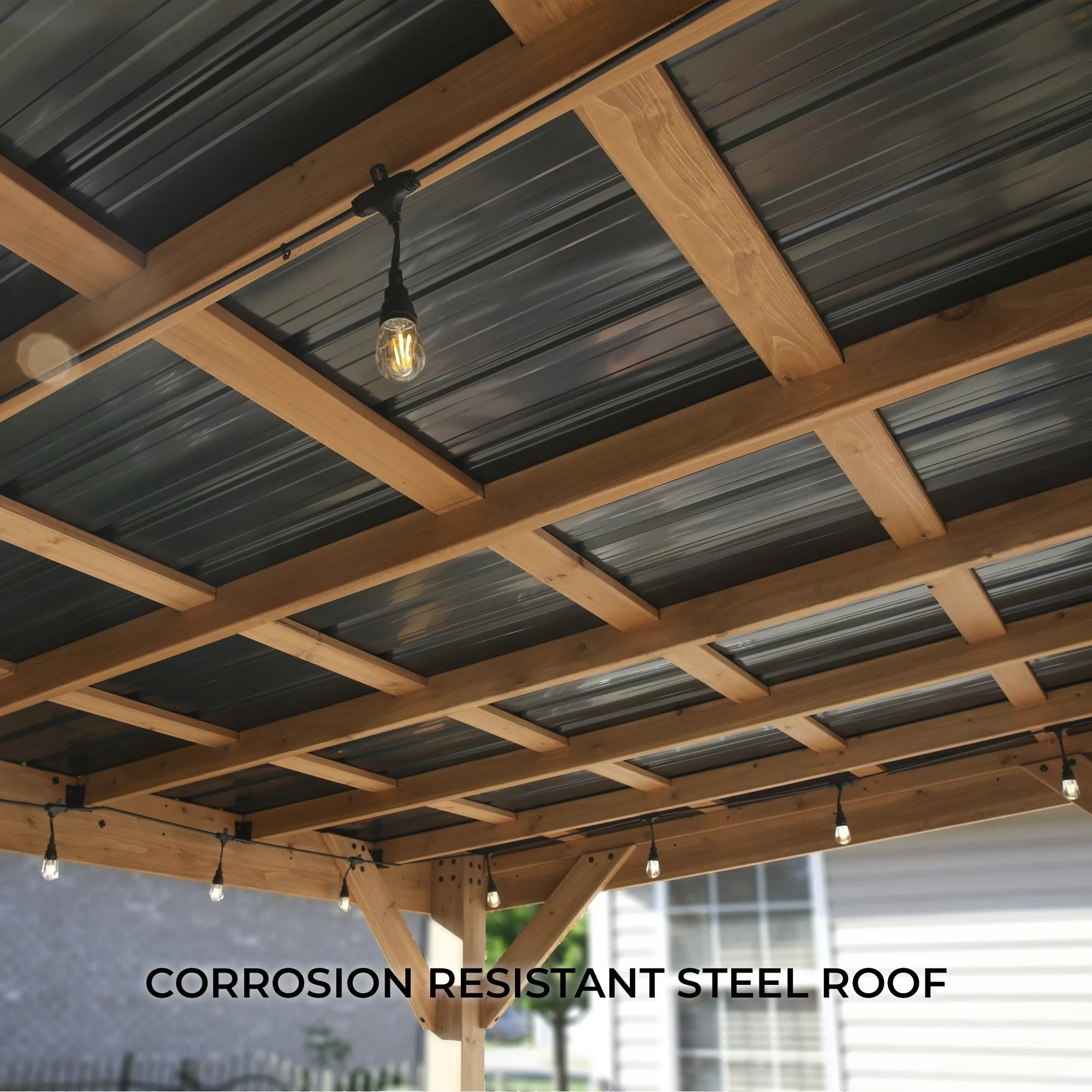 Expand your living space by inviting the 12 x 9.5 ft. Arcadia Slope Roof Gazebo by Backyard Discovery home today! This clean yet versatile slope roof design will create a premium outdoor area and compliment any home’s architectural style while it’s functionality will prevent water from accumulating on the roof. The Arcadia is a reliable Pro-Tect™ structure; certified to withstand a roof load of up to 3,510 pounds and up to 100 MPH winds. Naturally resistant to decay; the 100% Cedar Arcadia Gazebo includes our exclusive PowerPort™ with 3 electrical outlets and 3 USB ports to power up anything you might need while relaxing or entertaining. Backed by our industry leading 5-year warranty; the Arcadia Slope Roof Gazebo will be the impressive focal point of any outdoor scene for years to come! PRO-TECT CERTIFIED: Pro-Tect™ structure; certified withstand a roof load up to 3,510 lbs. (up to 18 inches of snow load)