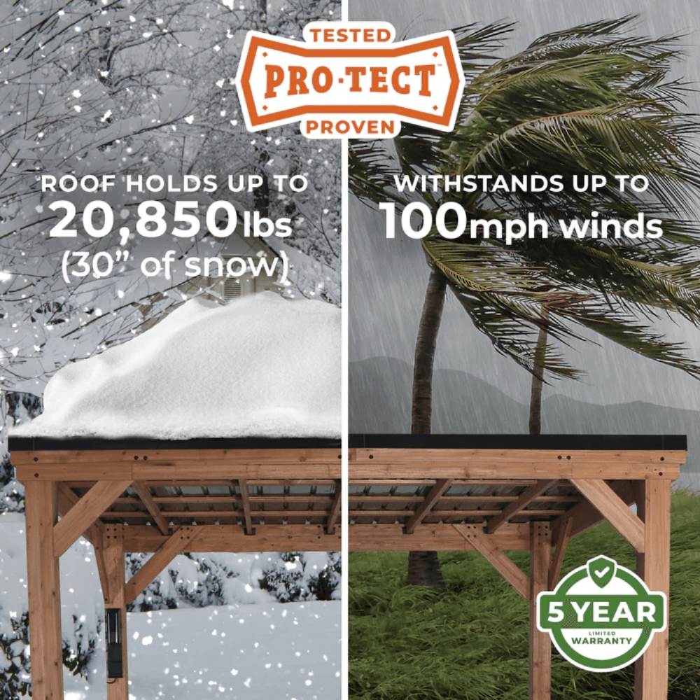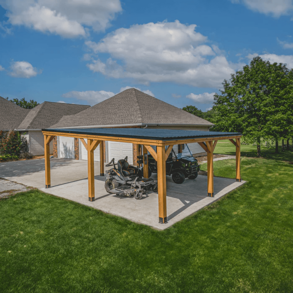 Protect your vehicles, outdoor equipment, or create a covered entertainment space with the Backyard Discovery 20′ x 20′ Kingsport Carport. Engineered for extreme durability, this PRO-TECT™ Tested & Proven structure features a heavy-duty steel roof, 100% cedar wood posts, and reinforced powder-coated steel brackets to ensure superior strength and longevity. Whether you’re shielding cars, trucks, ATVs, or boats, or setting up a shaded workspace, the Kingsport Carport is designed for all-weather performance.
