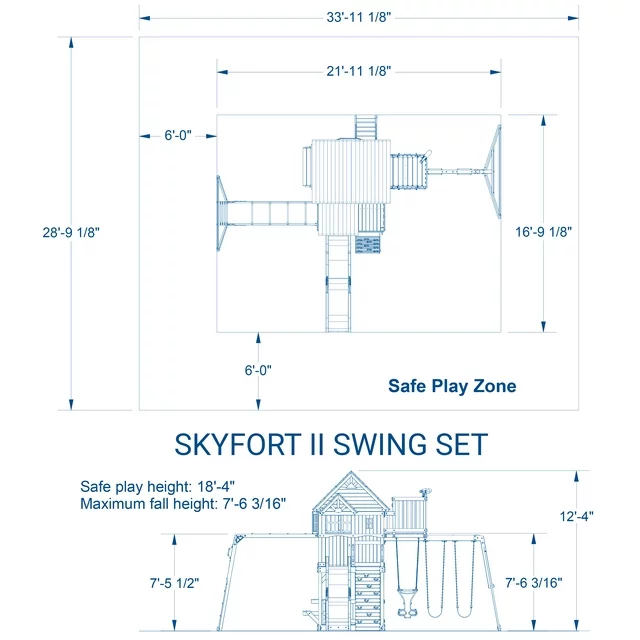 The Skyfort II will elevate your children’s imaginations and your landscape. With the raised clubhouse, roomy porch, and crow’s nest complete with its own telescope, this towering play and will feel like their own wooden castle. And there are plenty of fun, safe ways to move around this personal palace: a full length of monkey bars swings them straight into the raised clubhouse, a challenging rock wall allows them to climb directly onto the porch, and a 10 foot speedy slide slithers them right back down. The customer is responsible for the cost of the return shipping fee when you return an oversized item. The return shipping fee generally ranges from $200 to $500 (or more) depending on size and weight of the item.
