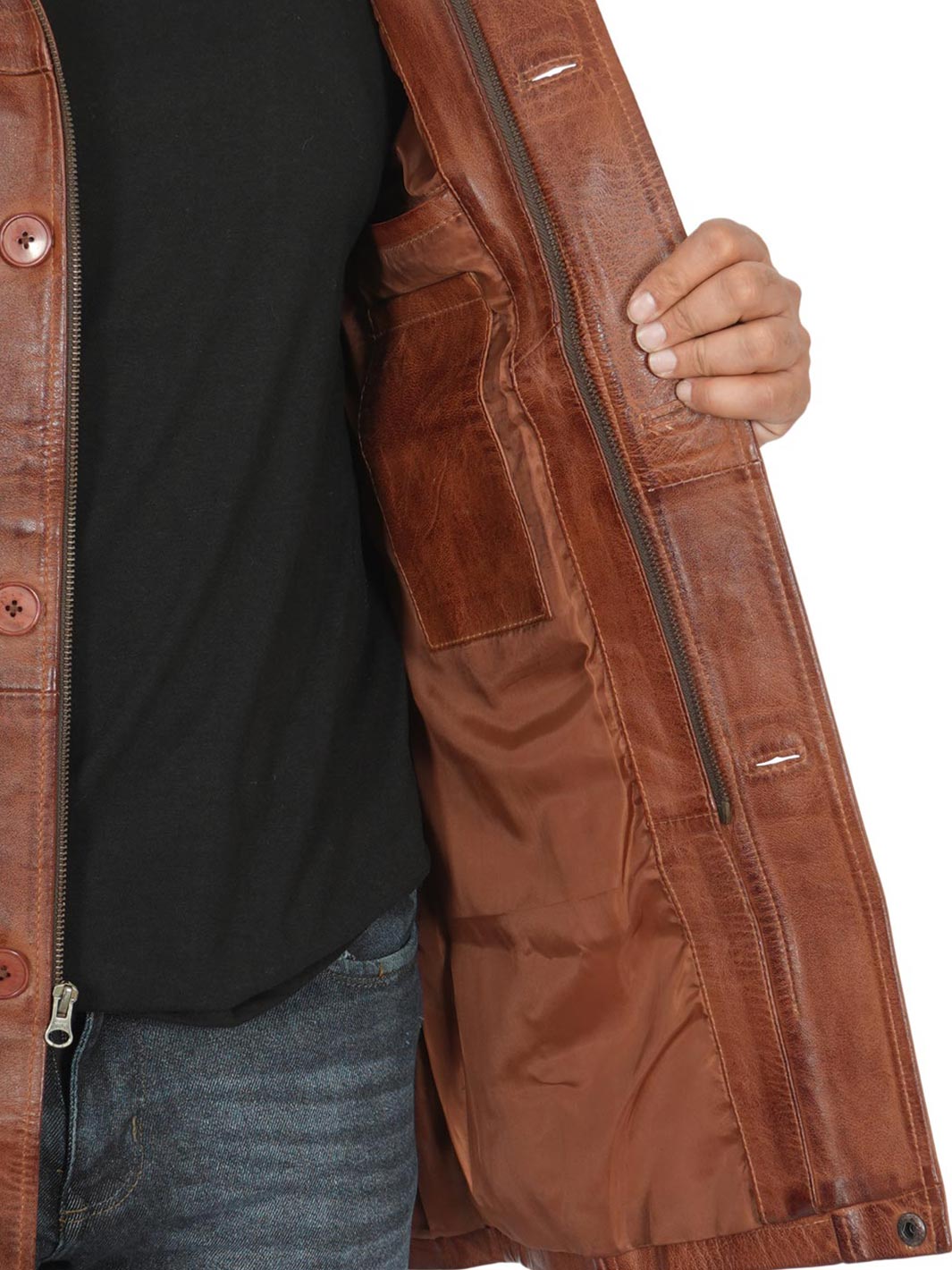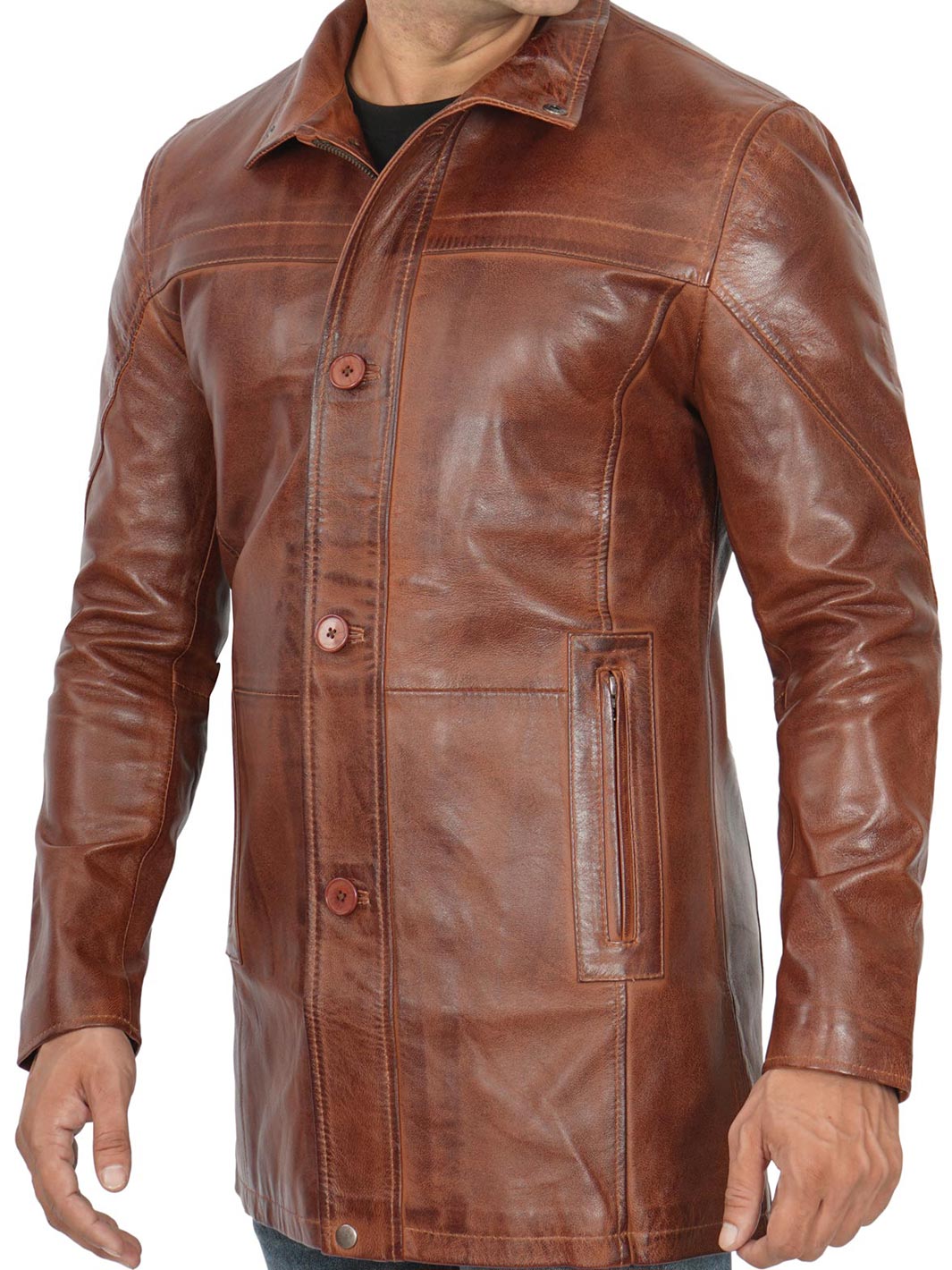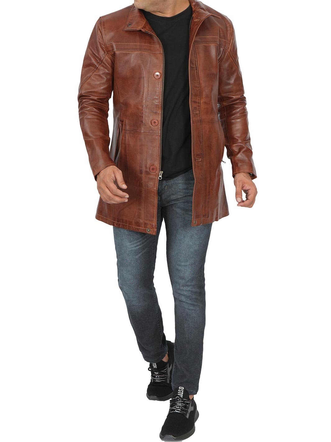 Elevate your style with our Tall Men’s Vintage Cognac Leather Car Coat. Crafted for sophistication and suitable for various occasions, it’s your ultimate choice.