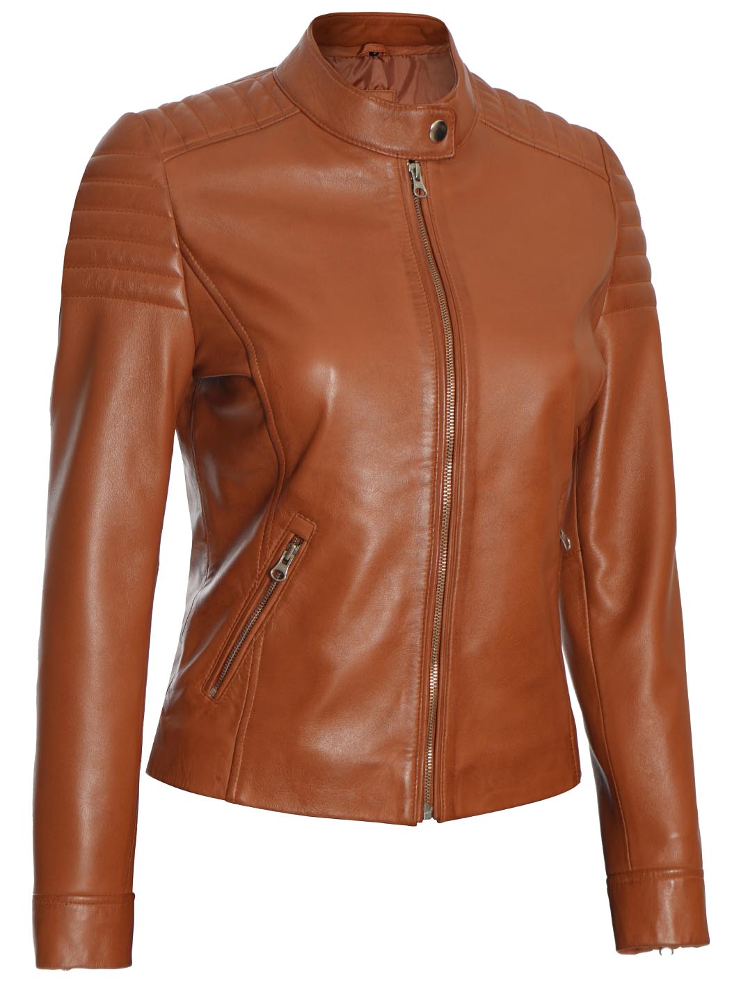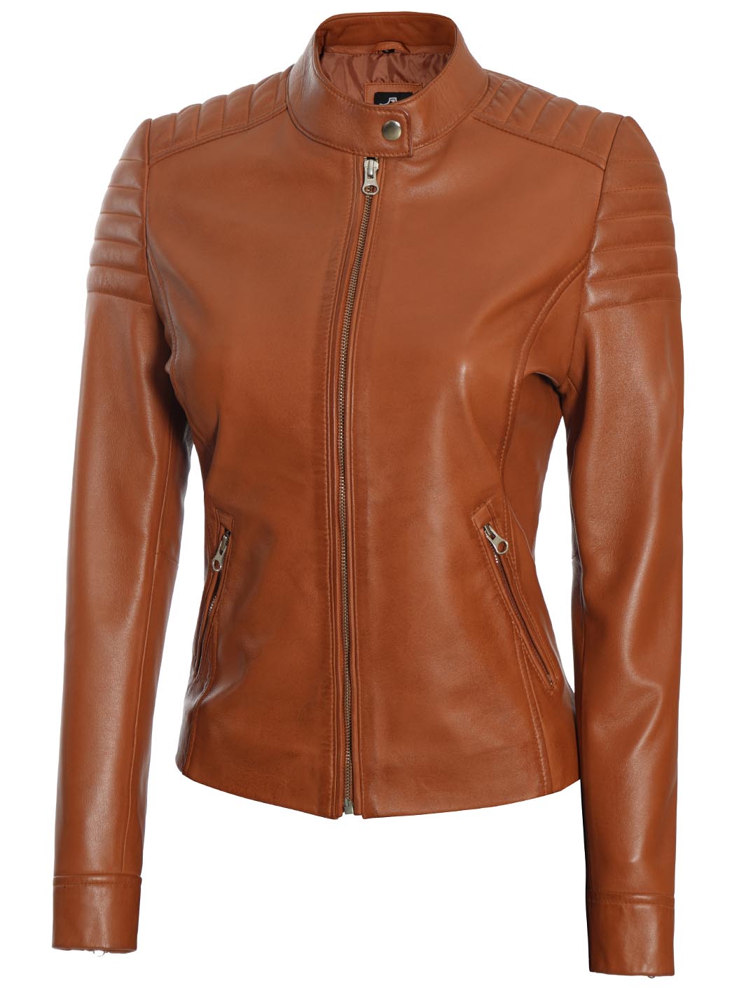 Carrie Women Tan Cafe Racer Leather Biker Jacket