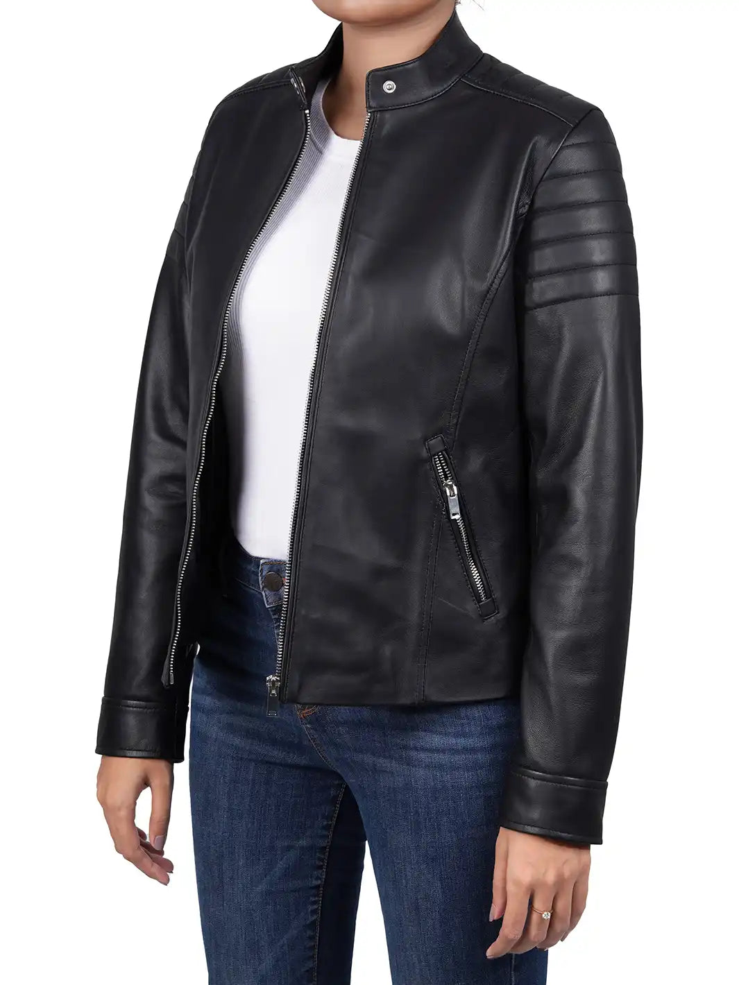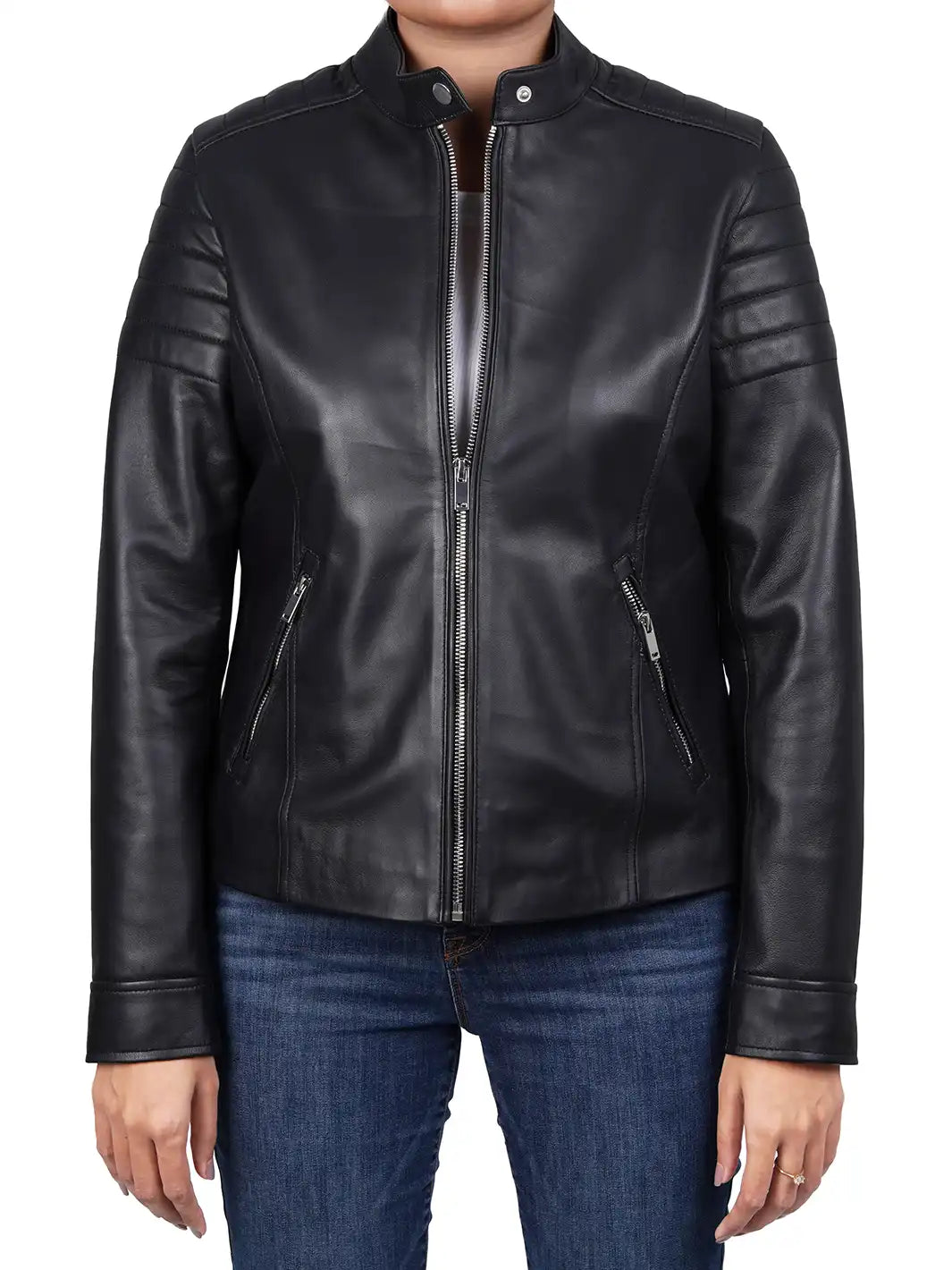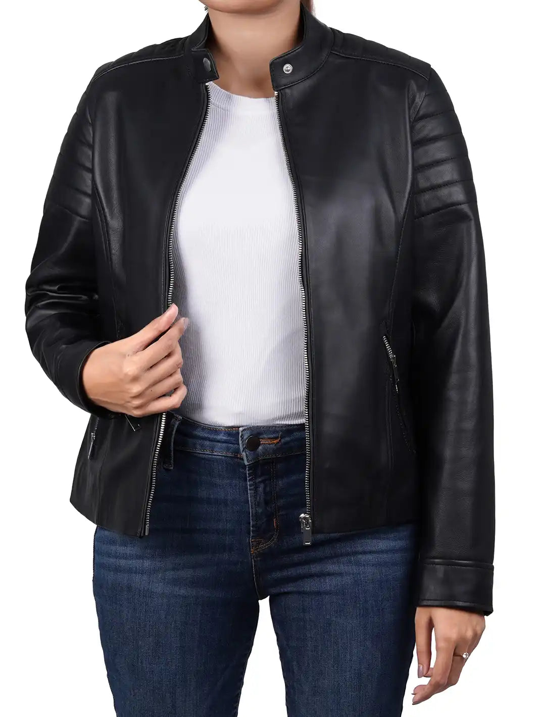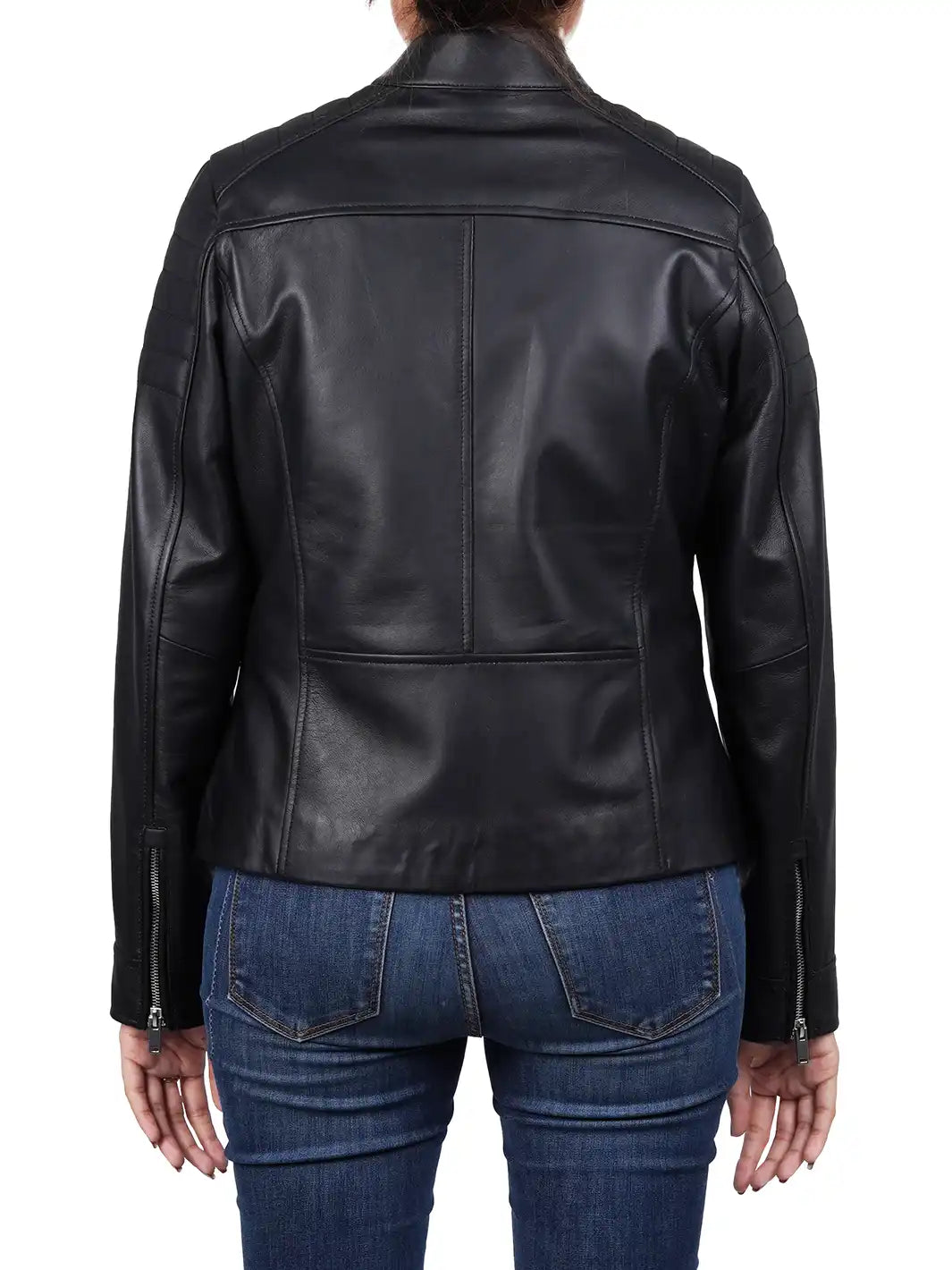 Carrie Relax Fit Black Cafe Racer Leather Jacket