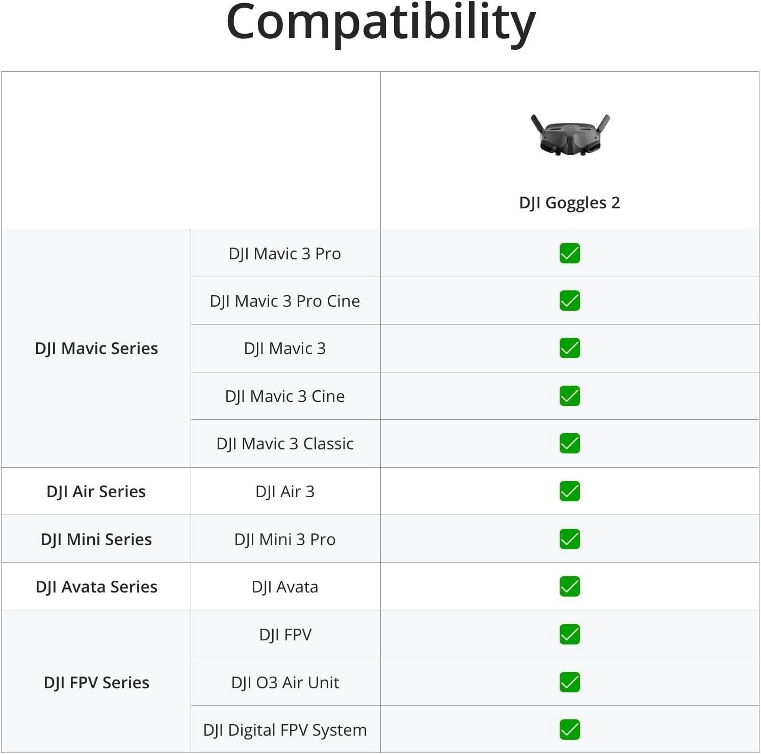 Skyward Exploration: Delve into spectacular sky-high views as if you’re flying with your drone. Compact and Travel-Friendly: DJI Goggles 2 are effortlessly transportable. The interchangeable foam padding ensures a comfortable, light-tight fit without undue pressure. Vivid Visuals: Dual Micro-OLED screens offer rich, natural colors. A dedicated video processor enhances smoothness and sharpness for outstanding visual clarity. Customizable Vision: Adjust the focus from +2.0 to -8.0 on Goggles 2, and lock your settings in place for future flights, making them suitable for users without glasses. Entertainment Beyond Flying: Wi-fi connectivity allows movie streaming directly into your Goggles. Experience synchronized audio for an immersive home cinema experience. Steady, Fast Connection: Enjoy real-time flight with minimal latency of just 30 ms. DJI Goggles 2 dynamically switch between 2.4GHz and 5.8GHz bands for a consistently smooth visual experience. Broad Compatibility: Compatible with a variety of drones including DJI Air 3, DJI Avata, DJI Mini 3 Pro, DJI Mavic 3 series, and more, enhancing their functionality.