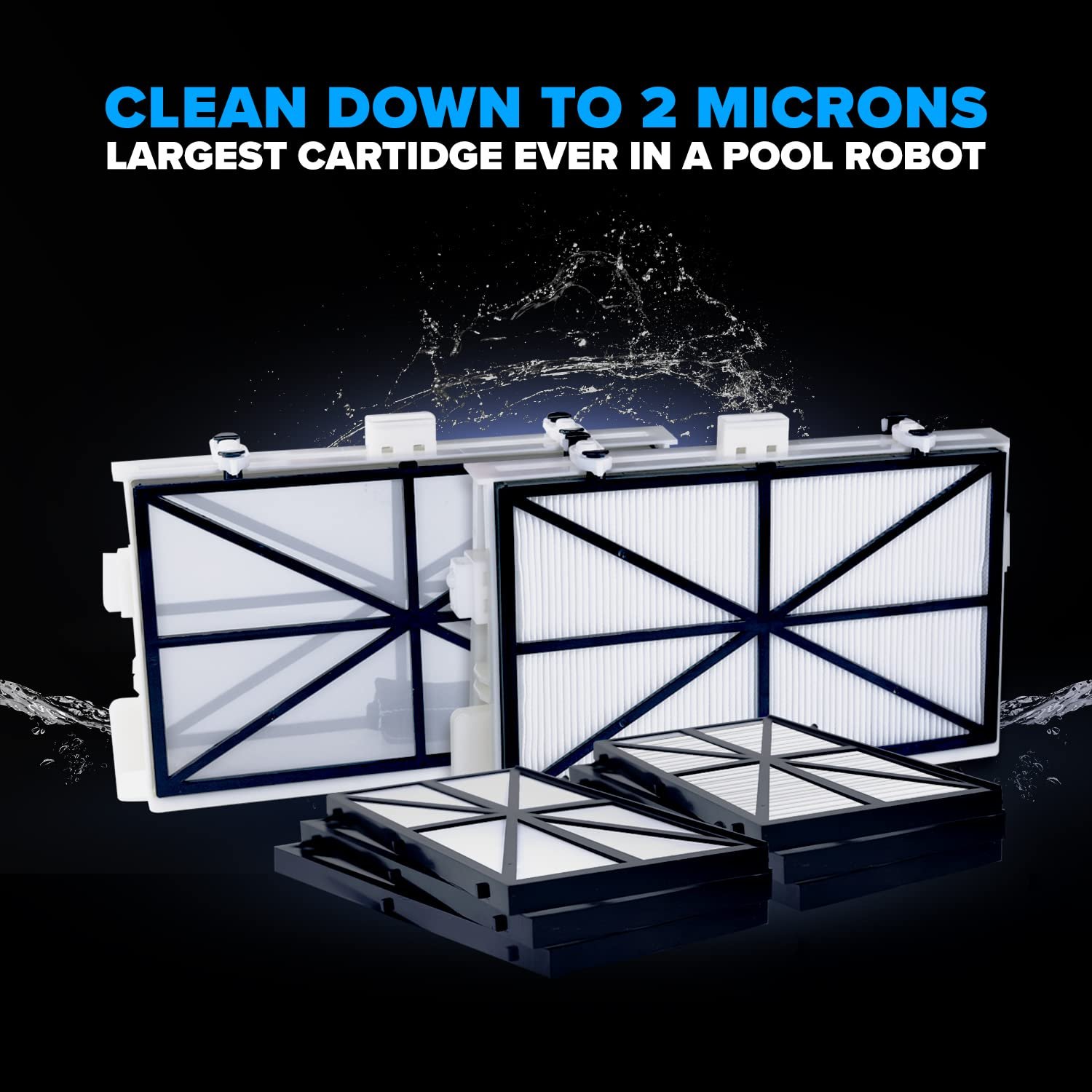 No messy bags to clean. Massive top-loading cartridge filters captures and traps fine and ultra-fine debris for an optimal clean swimming pool. Includes both Ultra-Fine and Standard Filter Cartridges Sets.
