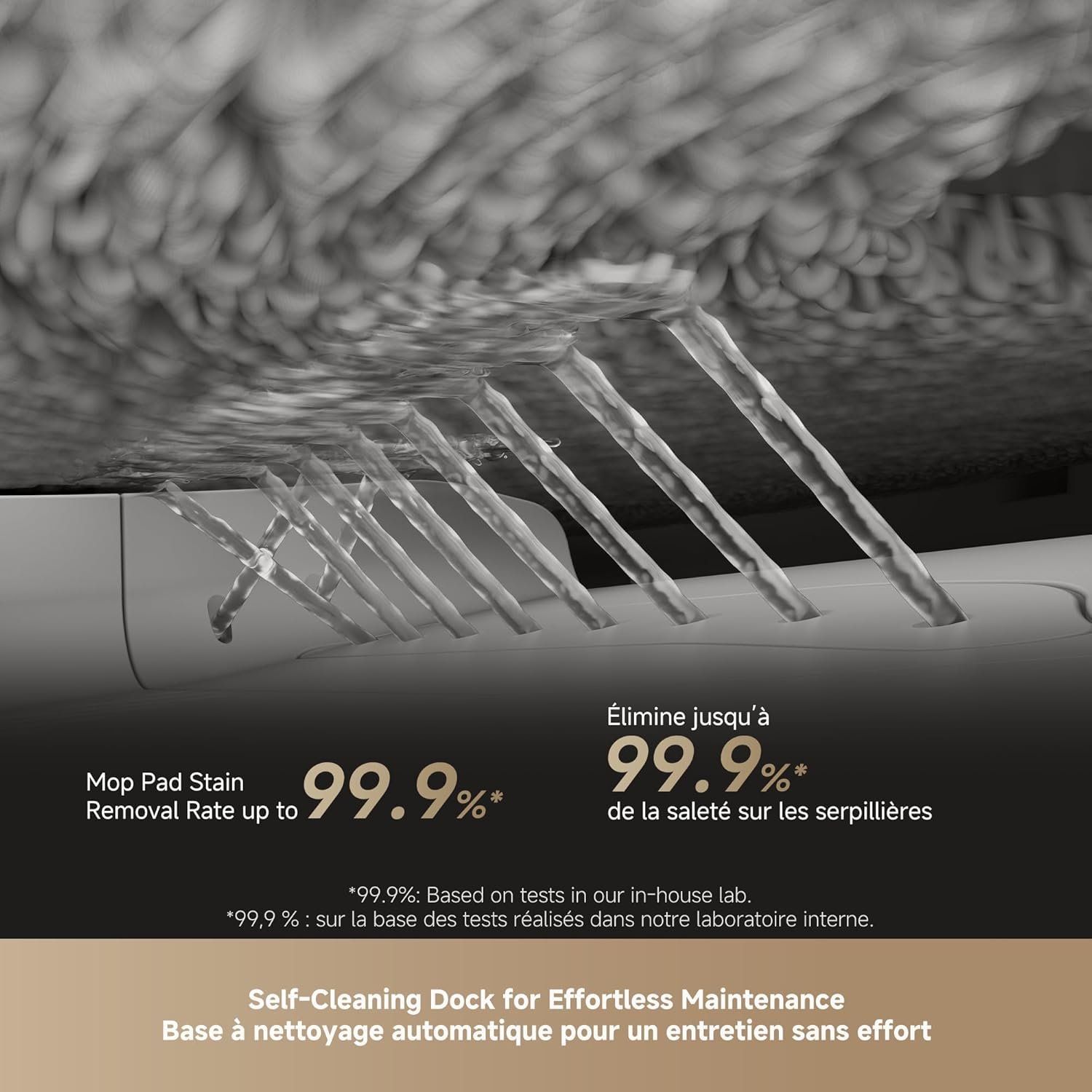 Edge-to-Corner Vacuuming and Mopping: Achieve thorough cleanliness of corners and tight spots with Dual Flex Arm technology. Its extendable side brush and mop aptly tackle different messes beneath low-profile furniture and in narrow spaces.