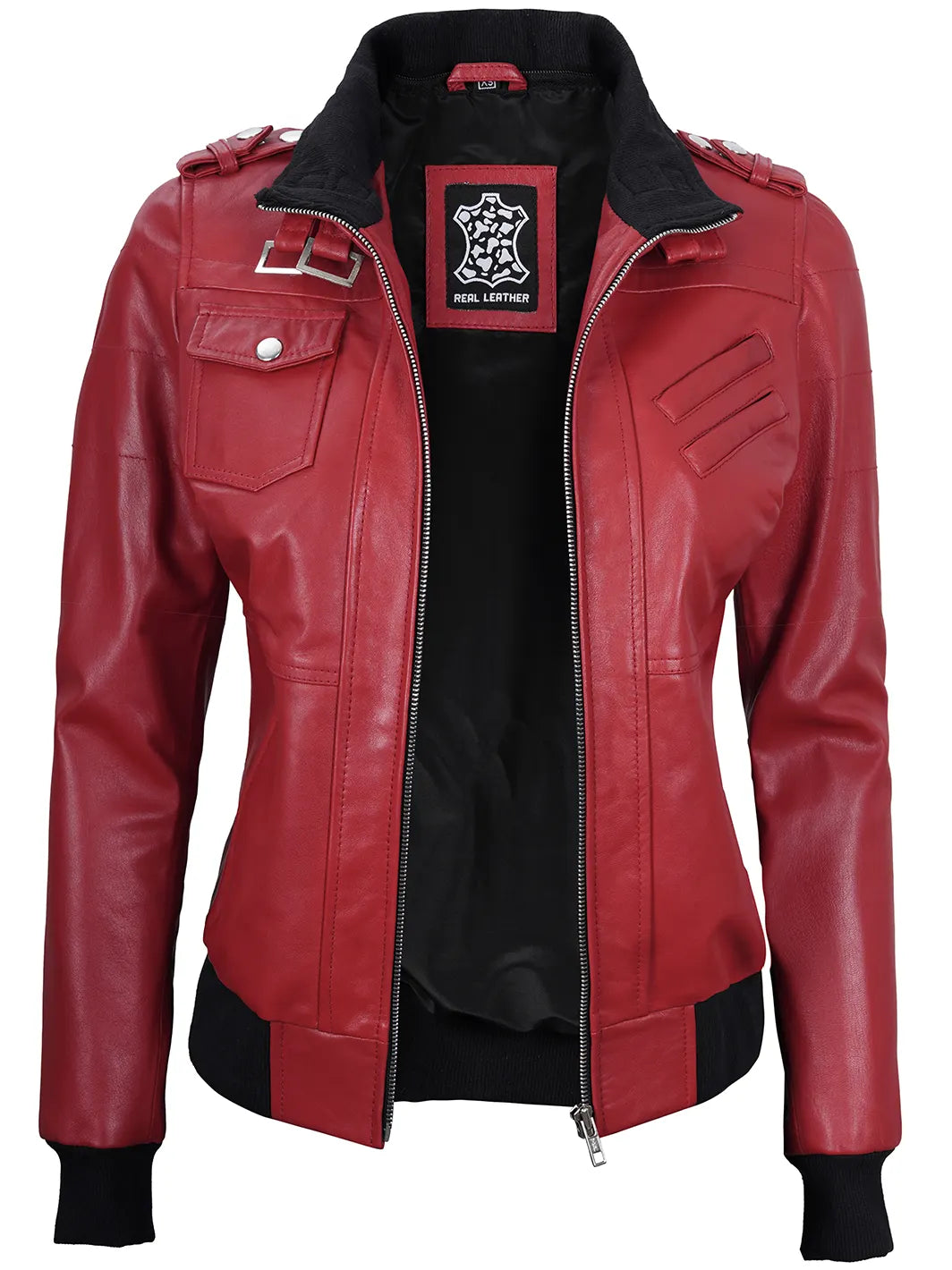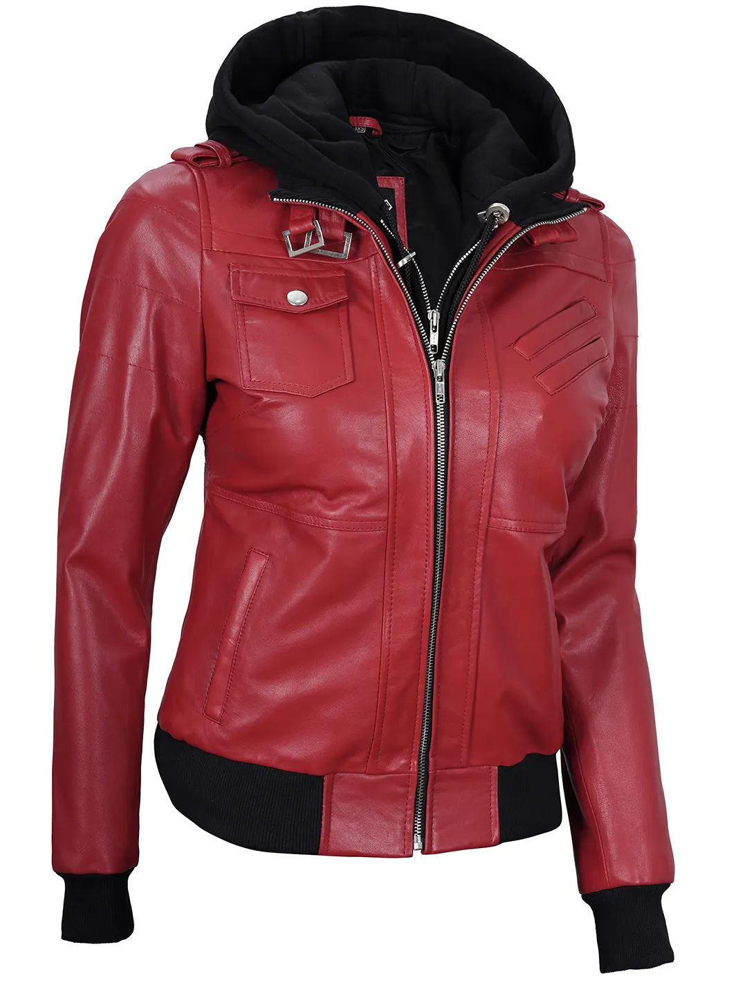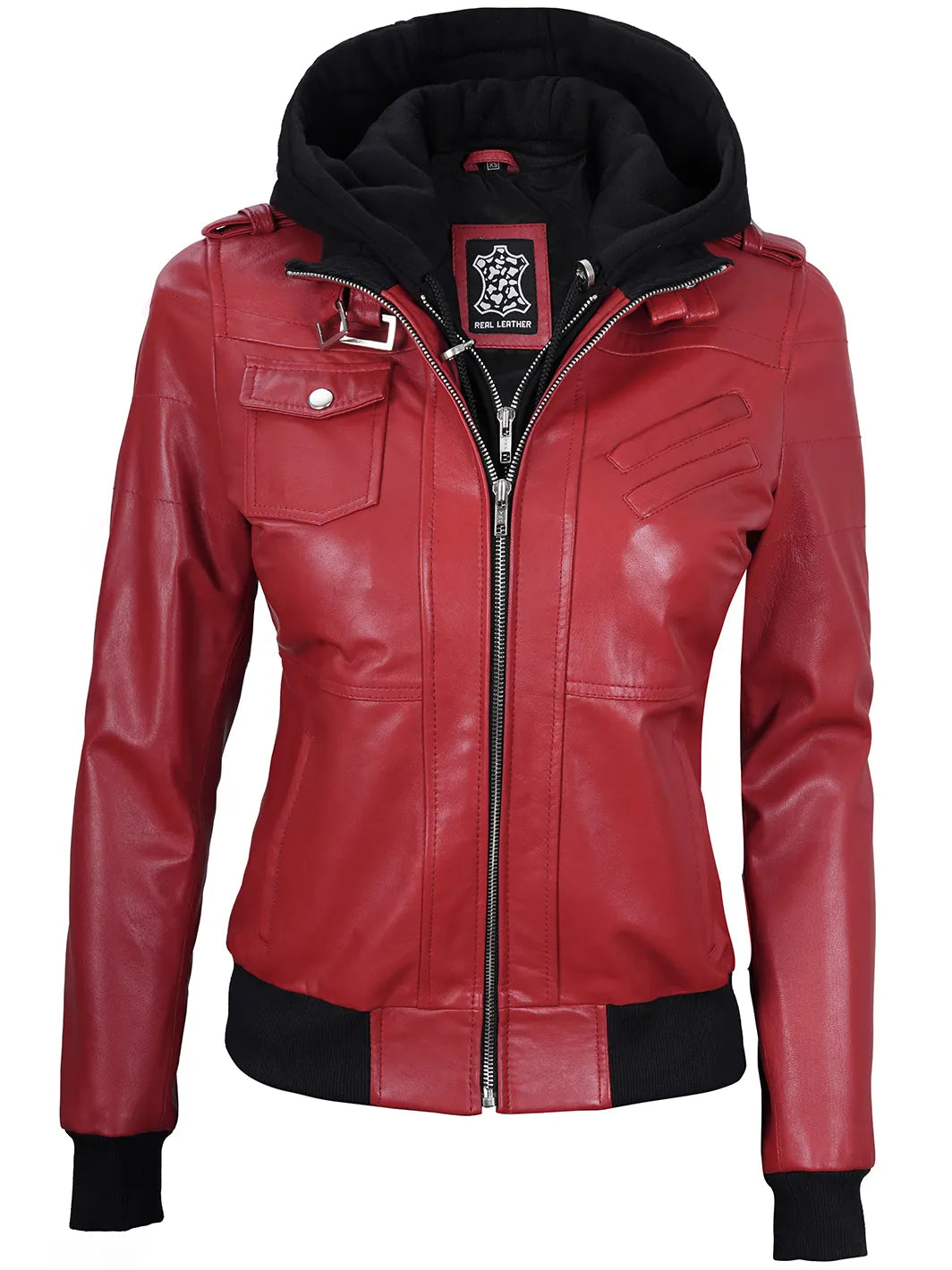 Make a bold statement with our Edinburgh Red Bomber Jacket With Hood. Constructed from high-quality leather, it boasts a striking red hue and includes a practical hood for versatile wear. Perfect for enhancing your wardrobe with style, whether for a night out or casual outings.