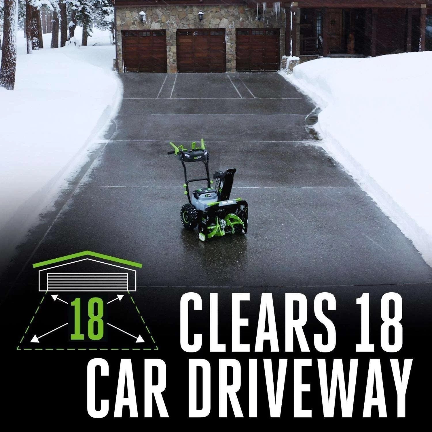 Clear an 18 car driveway with 8 inch of snow on a single charge
