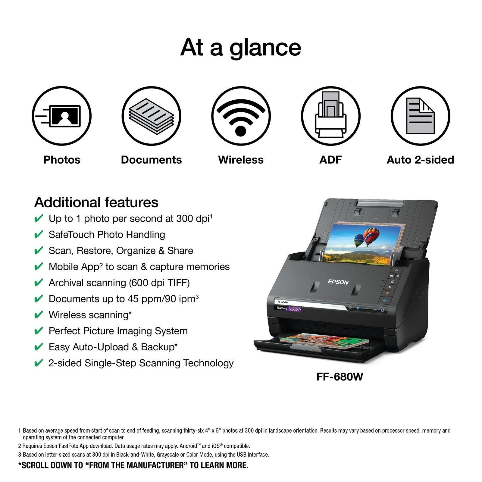 Epson FastFoto FF-680W Wireless High-speed Photo and Document Scanning System