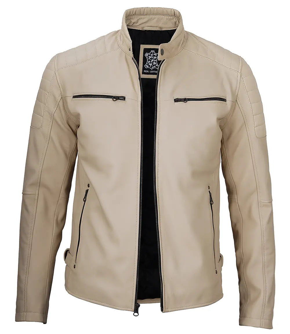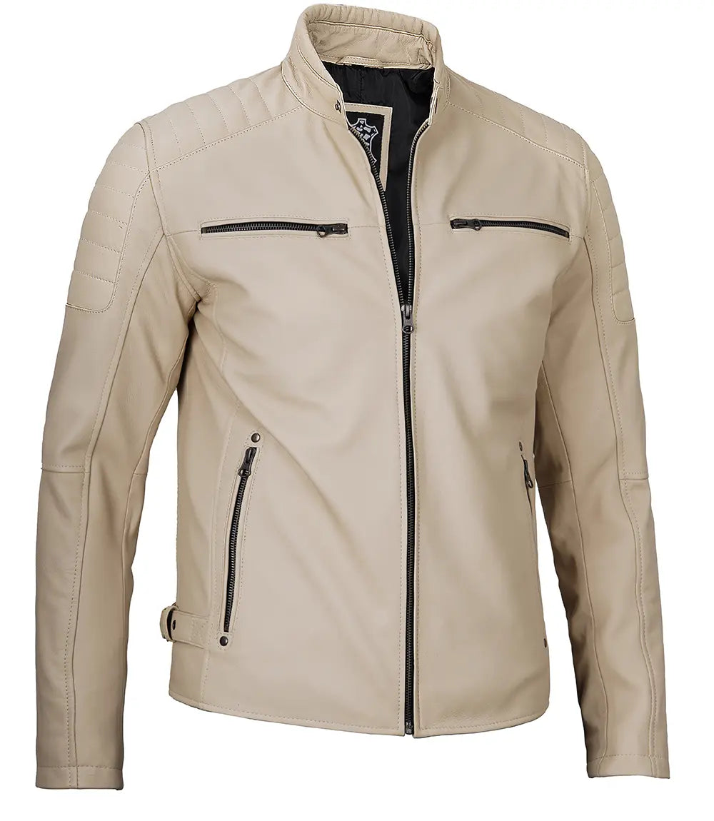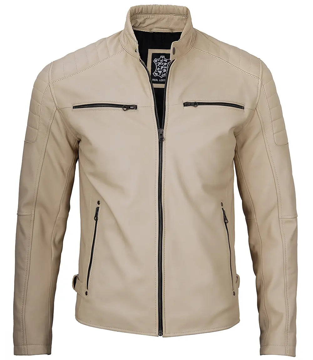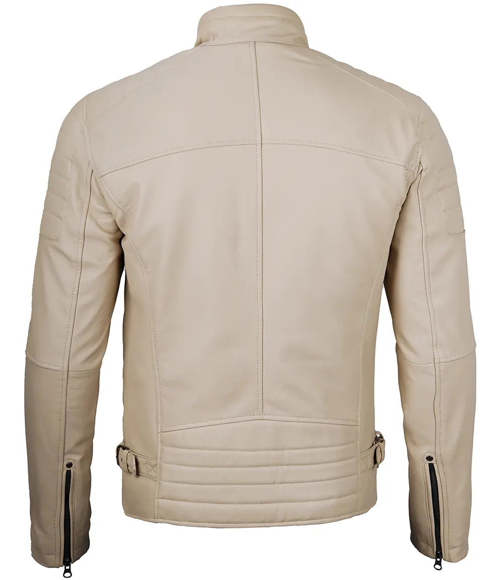 Felix Beige Cafe Racer Leather Jacket