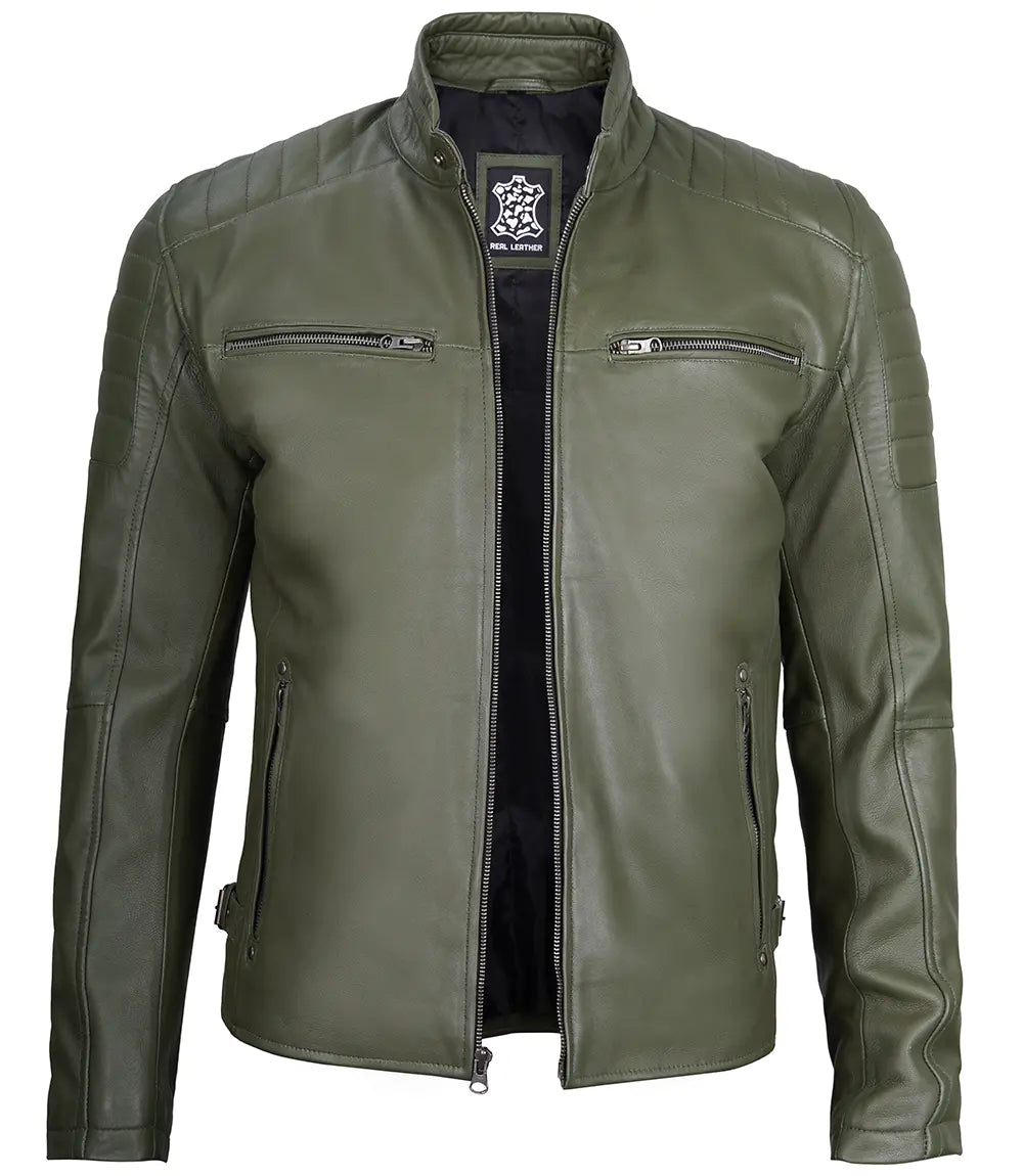 Upgrade your style with the Felix Green Cafe Racer Leather Jacket. Made for men, this jacket features a sleek cafe racer design that will make you stand out from the crowd. Crafted from high-quality leather, it’s not only fashionable but also durable and comfortable. Perfect for any occasion.