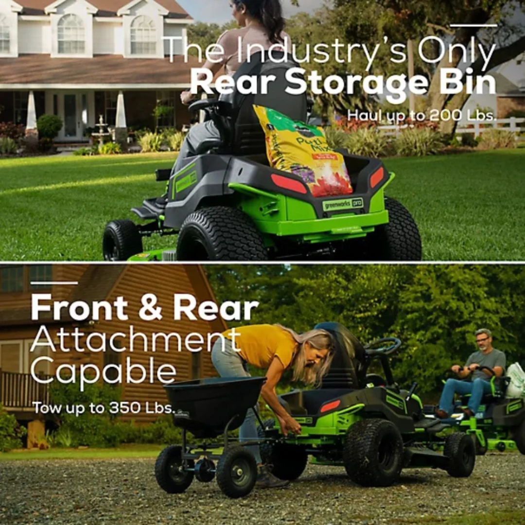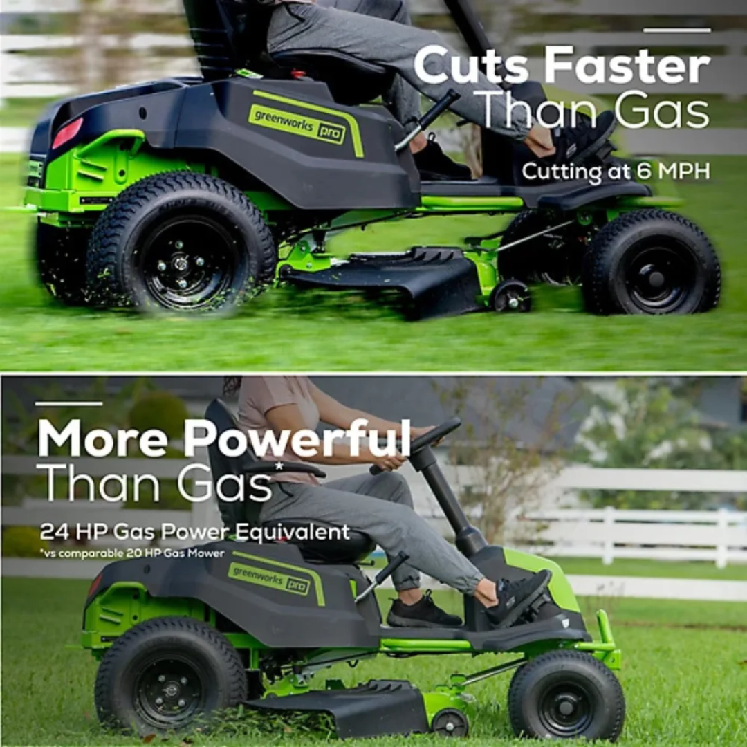 The Greenworks Pro CRT426 sets a new standard in cordless riding lawn mowers. Combining powerful performance, eco-friendly operation, and exceptional design, it offers a modern solution for those who demand the best in lawn care technology. Say goodbye to gas, fumes, and high maintenance costs, and embrace a cleaner, quieter, and more efficient way to maintain your lawn.
