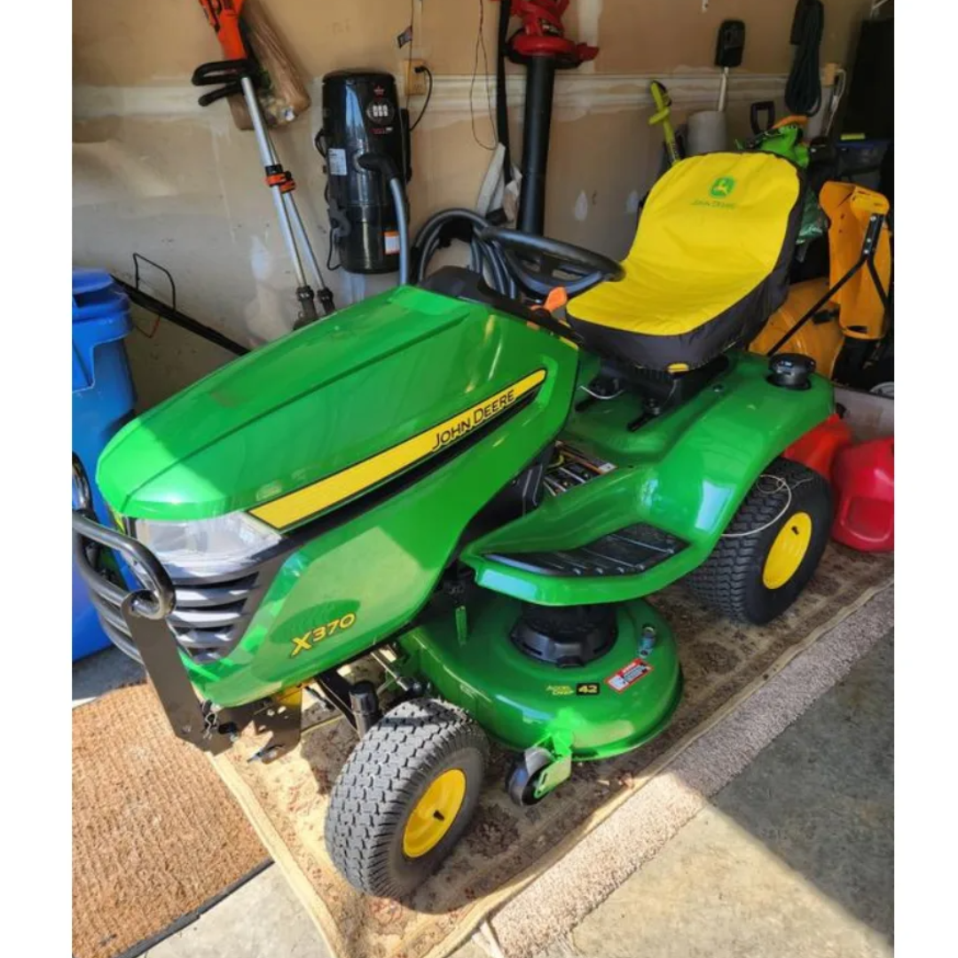 The John Deere X370 Lawn Tractor offers exceptional performance, smooth operation, and premium comfort, making it the perfect choice for homeowners looking for a high-quality, easy-to-use mower.