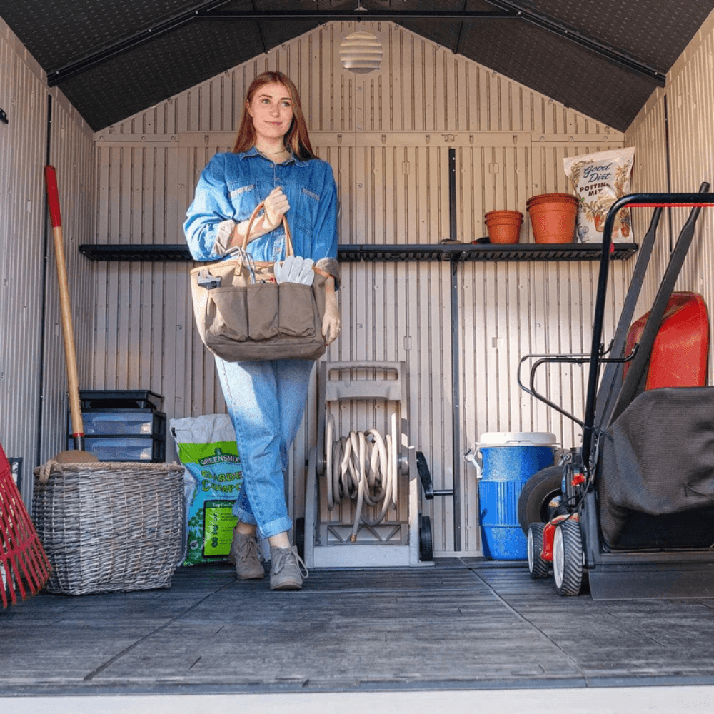 ✔ 80 square feet of storage space for tools, lawn equipment, patio furniture, and seasonal items