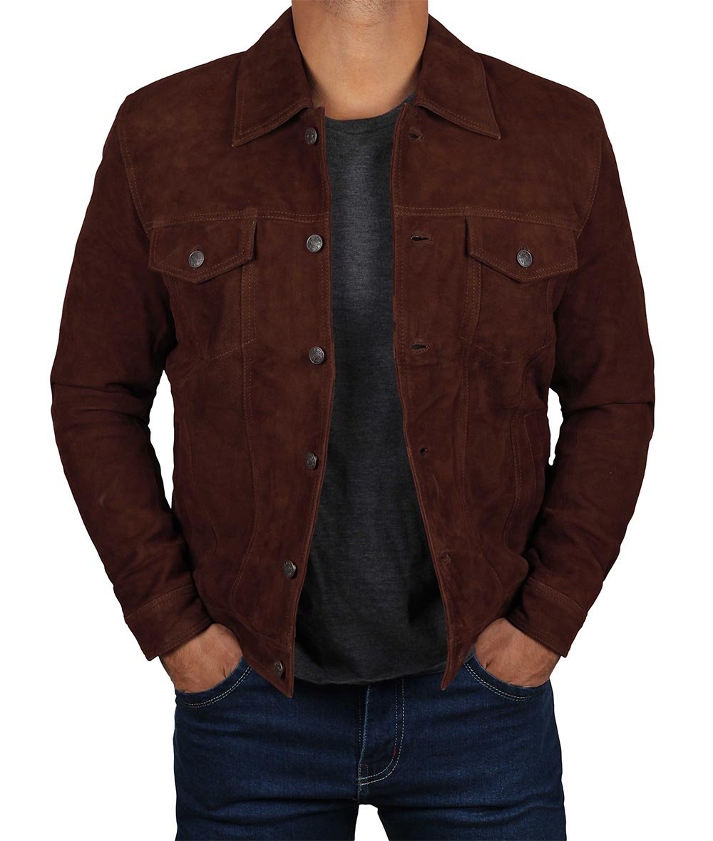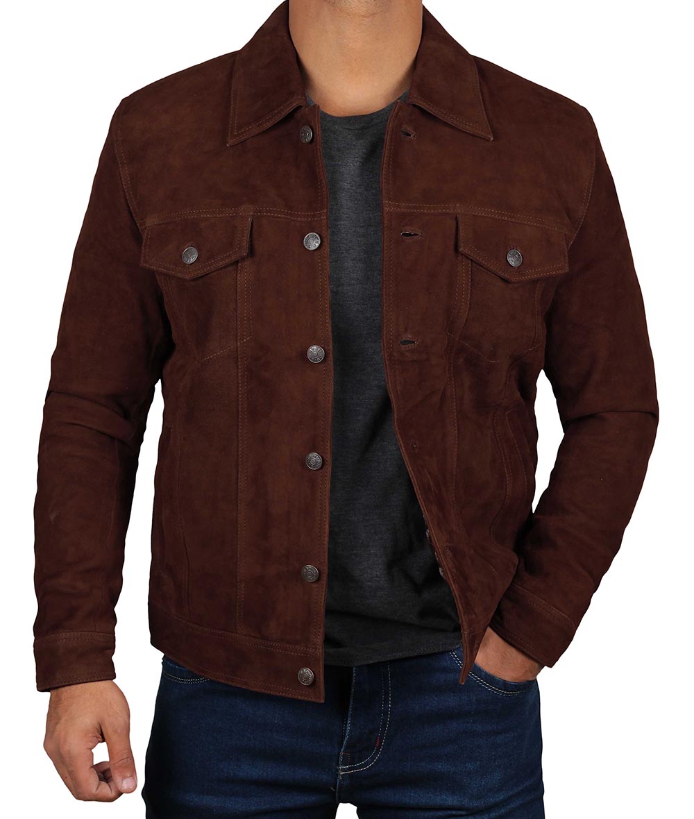 Logan Men’s Dark Brown Suede Trucker Jacket