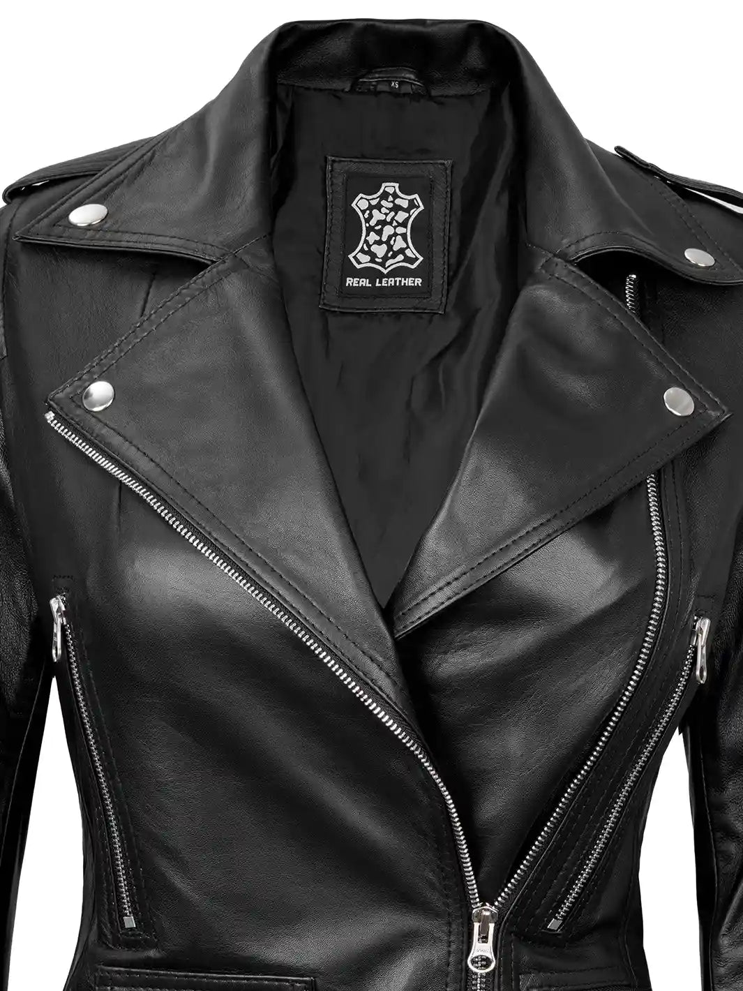 Step into the realm of edgy fashion with the Marcella Women’s Black Asymmetrical Biker Leather Jacket. Meticulously designed with unwavering attention to detail, this jacket boasts an asymmetrical design that radiates unshakeable confidence.