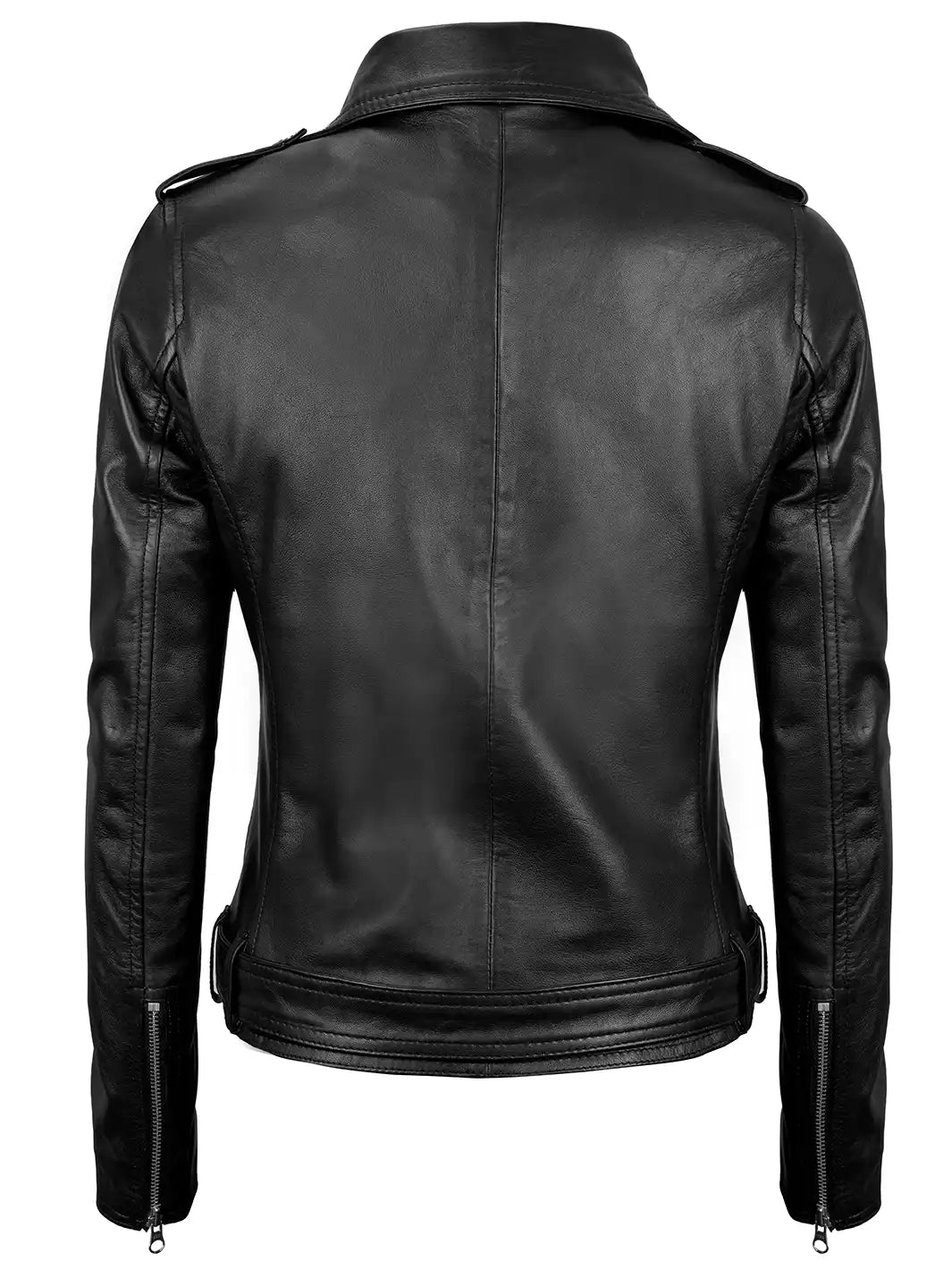 Marcella Womens Black Asymmetrical Cafe Racer Leather Jacket