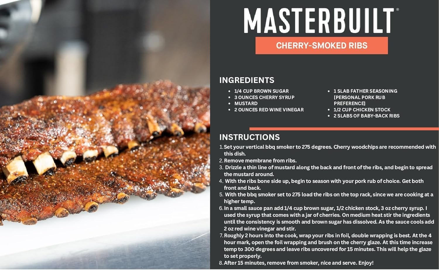 MASTERBUILT APP CONTROL – Set your temperature and cook time, receive alerts, monitor up to 4 meat probes, and discover new recipes by using the Masterbuilt compatible app.
