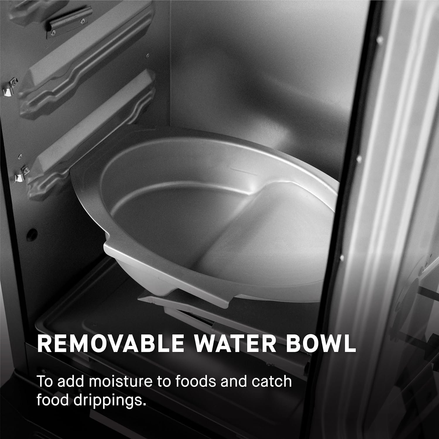 WATER BOWL TO ADD MOISTURE – The removable water bowl allows for optimal amount of moisture, resulting in juicy and tender meats. Experiment with different juice flavors for hints of various flavor profiles.