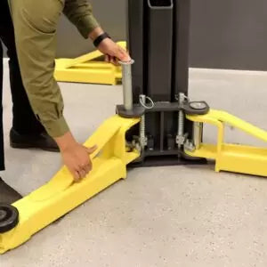 A two-post car lift with built-in wheels that allows you to use the lift when you need it, then conveniently store it out of the way when not in use keeping your garage and vehicle lanes clutter-free.Stow to go in less than 15-minutes