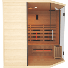 Meetthe first full spectrum and traditional heat sauna of its kind, the Hybrid Medical 9 Plus Sauna. What does that mean? It means that it combines full spectrum infrared technology with a traditional heat sauna stove. This amazing saunawas designed toto relieve pain, improve cardiovascular health, strengthen yourMeetthe first full spectrum and traditional heat sauna of its kind, the Hybrid Medical 9 Plus Sauna. What does that mean? It means that it combines full spectrum infrared technology with a traditional heat sauna stove. This amazing saunawas designed toto relieve pain, improve cardiovascular health, strengthen your immune system, and detox your body. At home spa days will never be the same with the Hybrid Medical 9 Plus Sauna. Secure yours today!In a Nutshell:4-6Person Capacity13HeatersHot/Cold Cleaning Systemto relax muscles and improve flexibilityDetox Routineto remove bad toxins and impurities from the bodyInsulated Airflow Systemto keep your sauna at the right temperature with less effort3D Heat Therapyto improve sore muscles, increase range of motion, decrease muscle spasms, and reduce painSafe Cool Down Systemtoprevent possible health complications from changing temperatures too quicklySkin Rejuvenation/Cleaning Systemtoleave your skin feeling soft, fresh, and newAlso Features:Natural Hemlock Wooden ConstructionSimple Touch Exterior LED Control PanelClasp-together AssemblyRoof VentTempered Glass DoorSpeaker System with AUX/MP3 ConnectionRapid Internal Heating SystemEnergy Efficient Heating SystemSimple Touch LED Control PanelsRadio & CD Player FunctionalityExterior Mood LightingChromatic Therapy SystemOmni-Directional HeatingDeep Bench Seating for Extra ComfortInterior Reading Light SystemSilent Heating SystemFull Spectrum Infrared TechnologyTemp/Humidity MeterAudio Theater SystemExtra-Energy Efficient: 15% Thicker Glass & Wood PanelsExecutive Corner Unit DesignExtra-Insulated Airflow SystemExtra-Rapid Internal Heating SystemHeat Cleansing Sauna Stove3 Year Warranty Included forFREESpecifications:Model: Hybrid Medical 9 PlusInterior Dimensions:62W x 62D x 72HExterior Dimensions:66W x 66D x 78HOperating Voltage: 120V/30ampWatts:3000WWeight: 595 lbsMeetthe first full spectrum and traditional heat sauna of its kind, the Hybrid Medical 9 Plus Sauna. What does that mean? It means that it combines full spectrum infrared technology with a tr