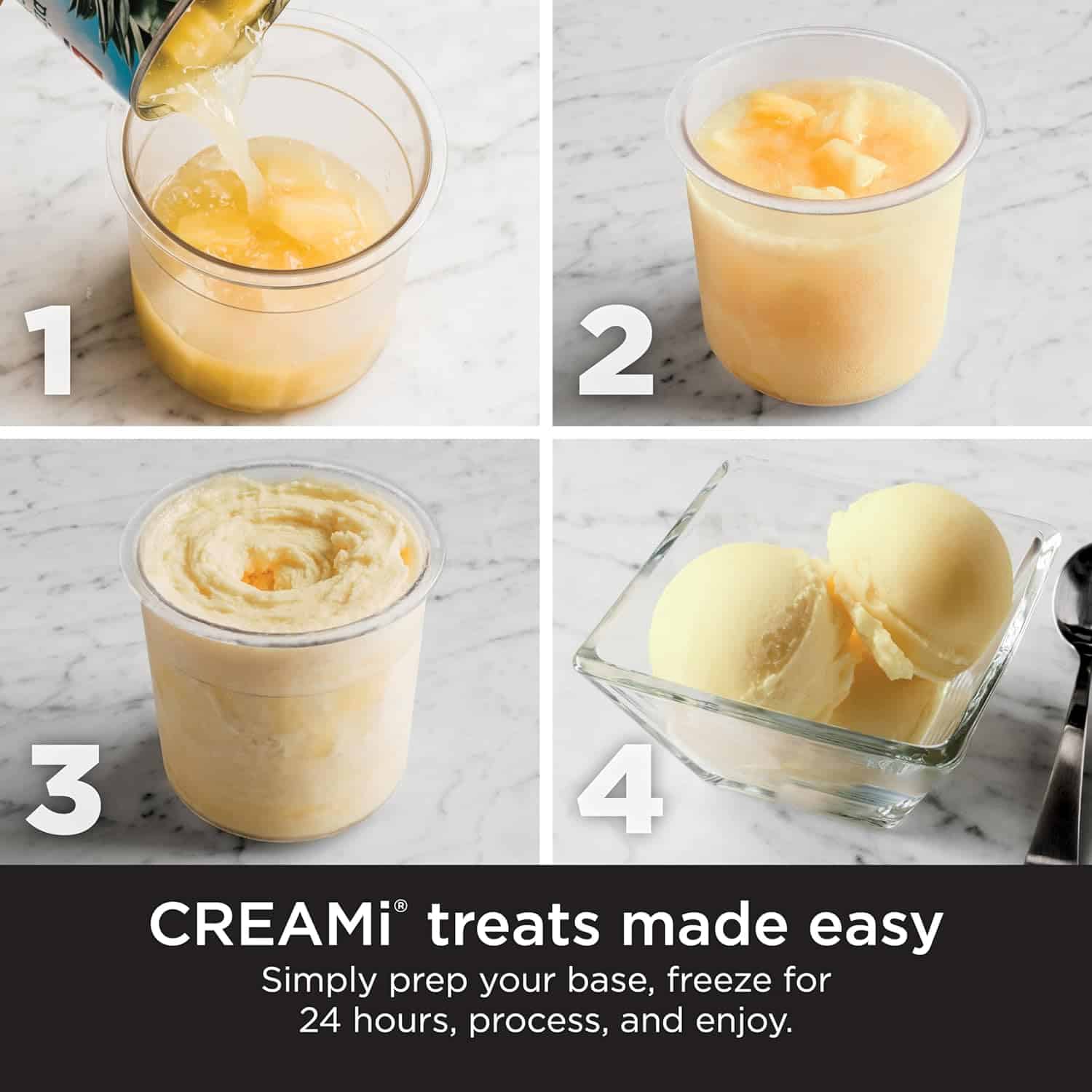 - EASY TO USE: Create a CREAMi treat in three easy steps. Simply prep your base, freeze overnight, process, and enjoy!