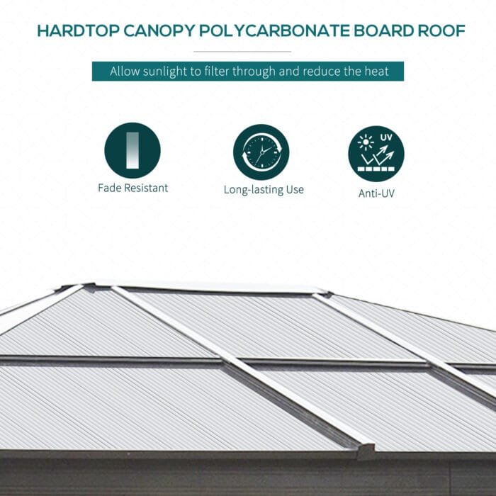 Looking for a lightweight outdoor option for your garden party or poolside plan? Outsunny has the 10×12 gazebos for patios that’s got you covered. Let the good in; keep the bad out. The 4 zip-on mesh nettings and privacy curtains let you master the elements. Made of easy-to-carry nonrusting aluminum and see-through polycarbonate. This gazebo canopy can be set up, torn down, and stored away fast. So, plan that picnic, bring buddies to that BBQ, and give them a garden party. We have you covered.