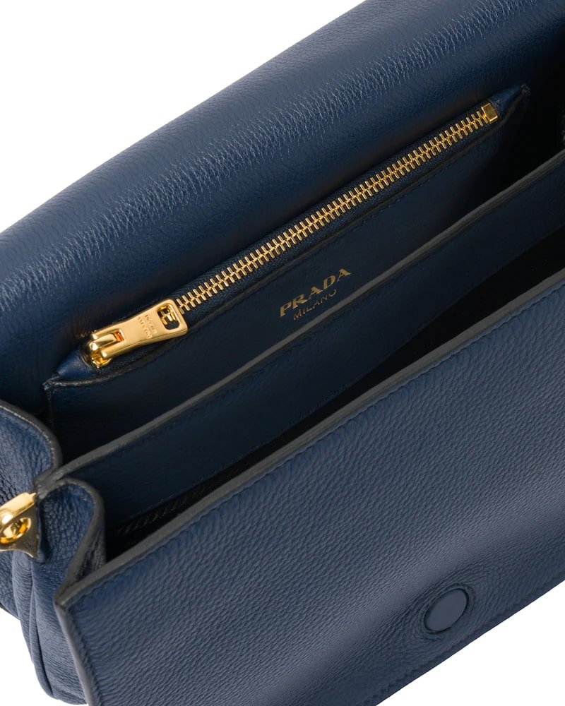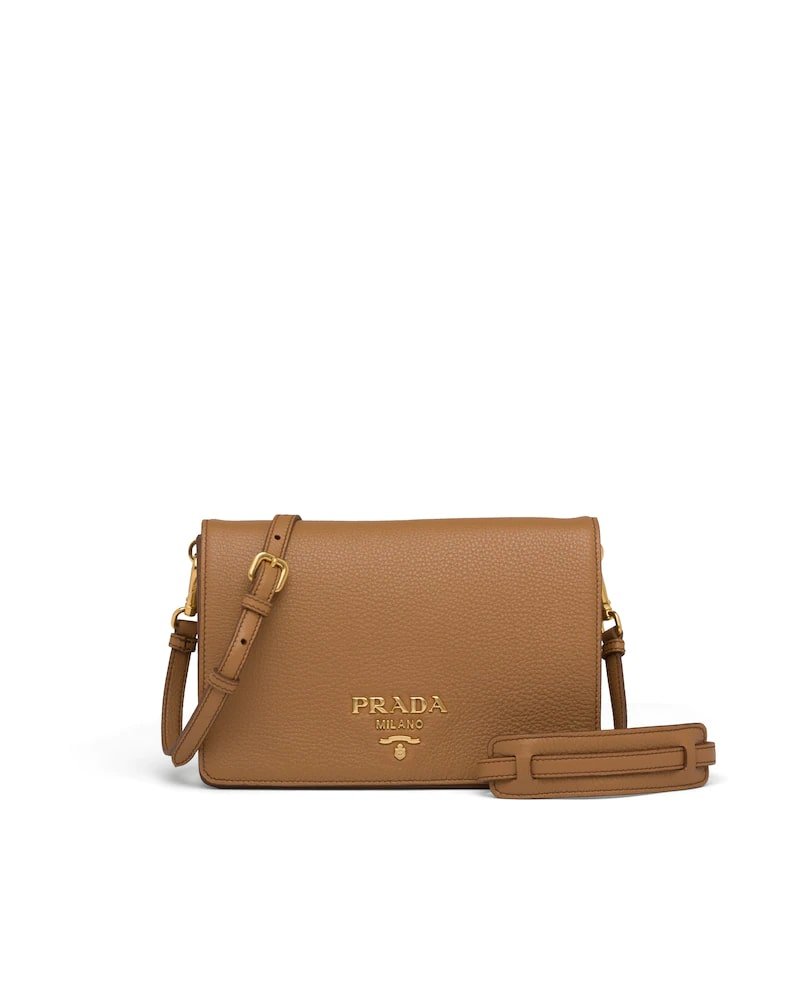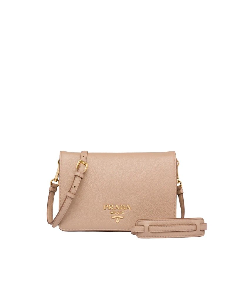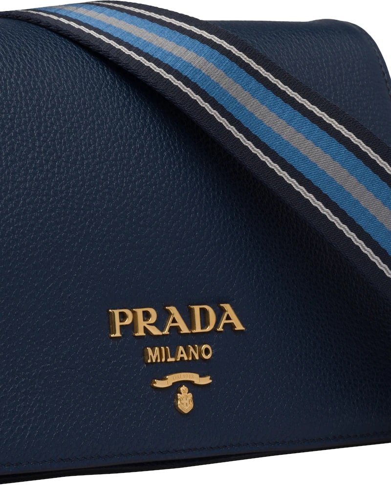 This bag with two compartments inside and metal logo stands out for its double shoulder straps in leather and nylon.
