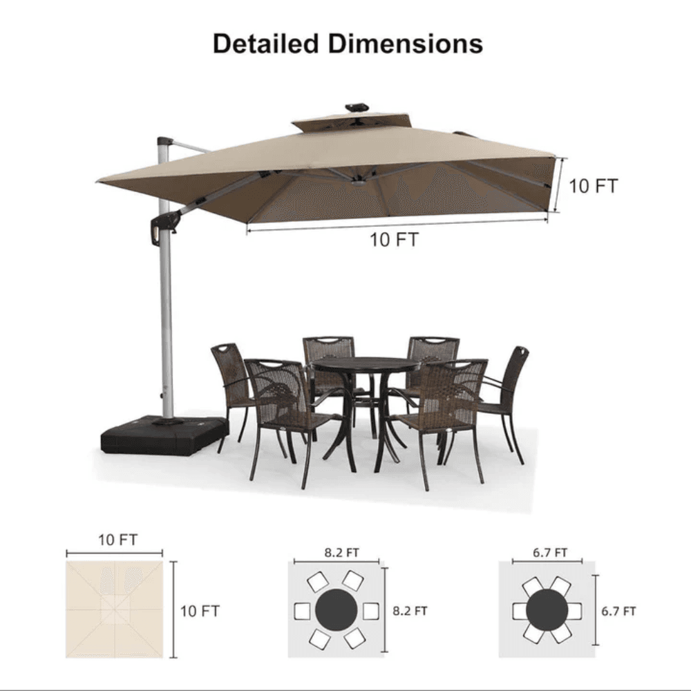 Create the perfect outdoor retreat with the PURPLE LEAF Solar LED Cantilever Patio Umbrella—a blend of luxury, durability, and functionality!
