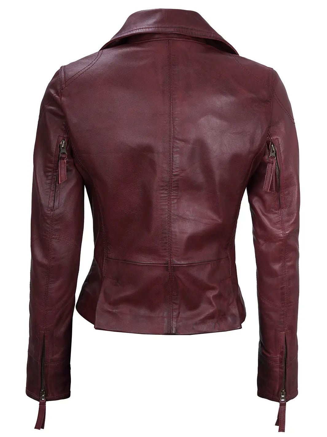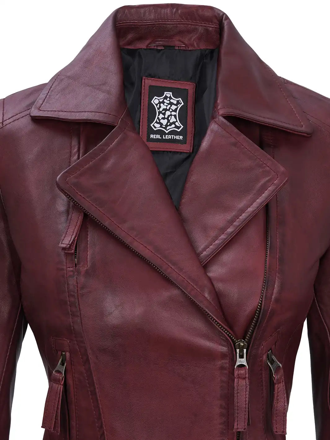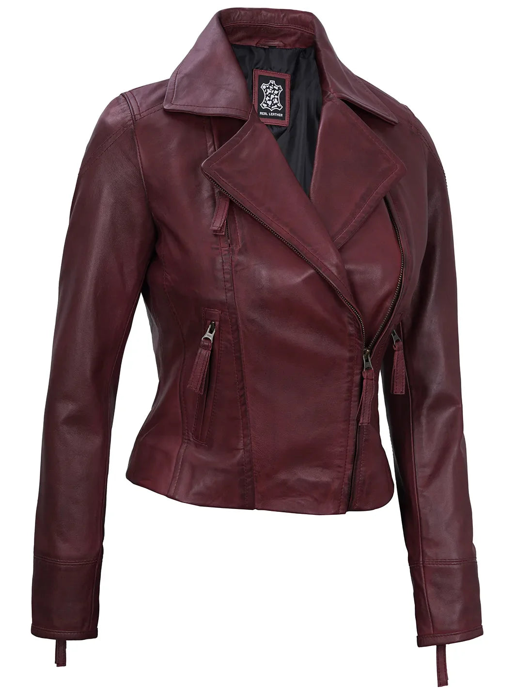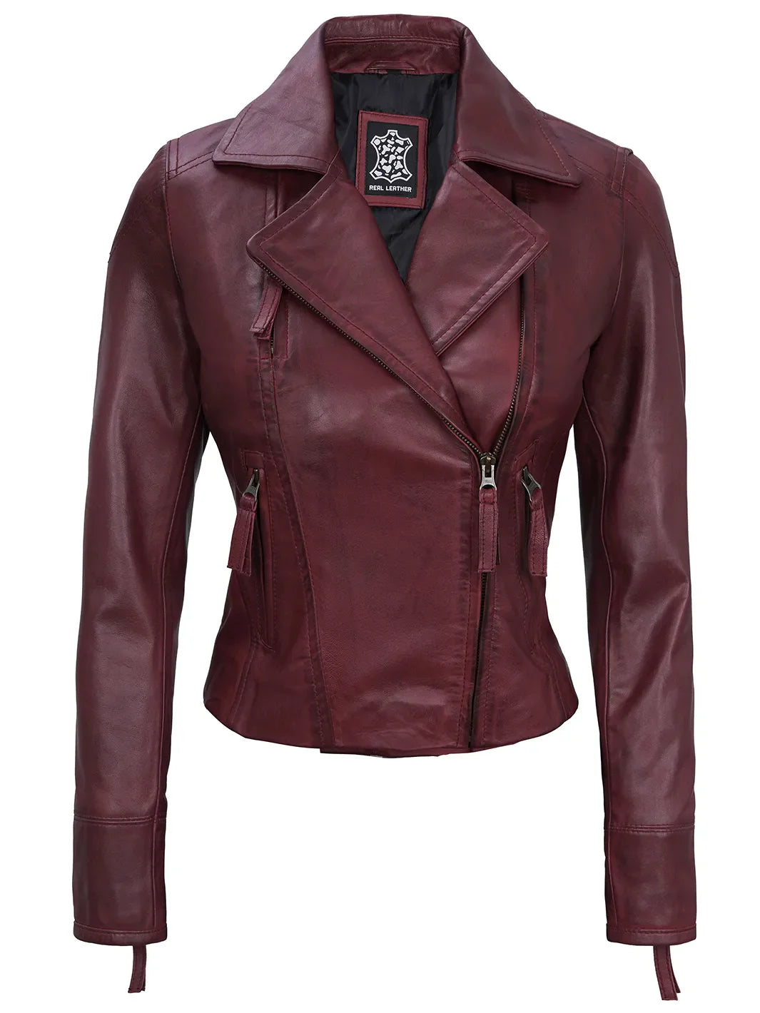Experience the Ramsey Women’s Maroon Asymmetrical Leather Jacket, a fusion of edgy elegance and sleek style. Crafted meticulously to embody confidence, this jacket features a deep maroon hue that adds depth to your ensemble.