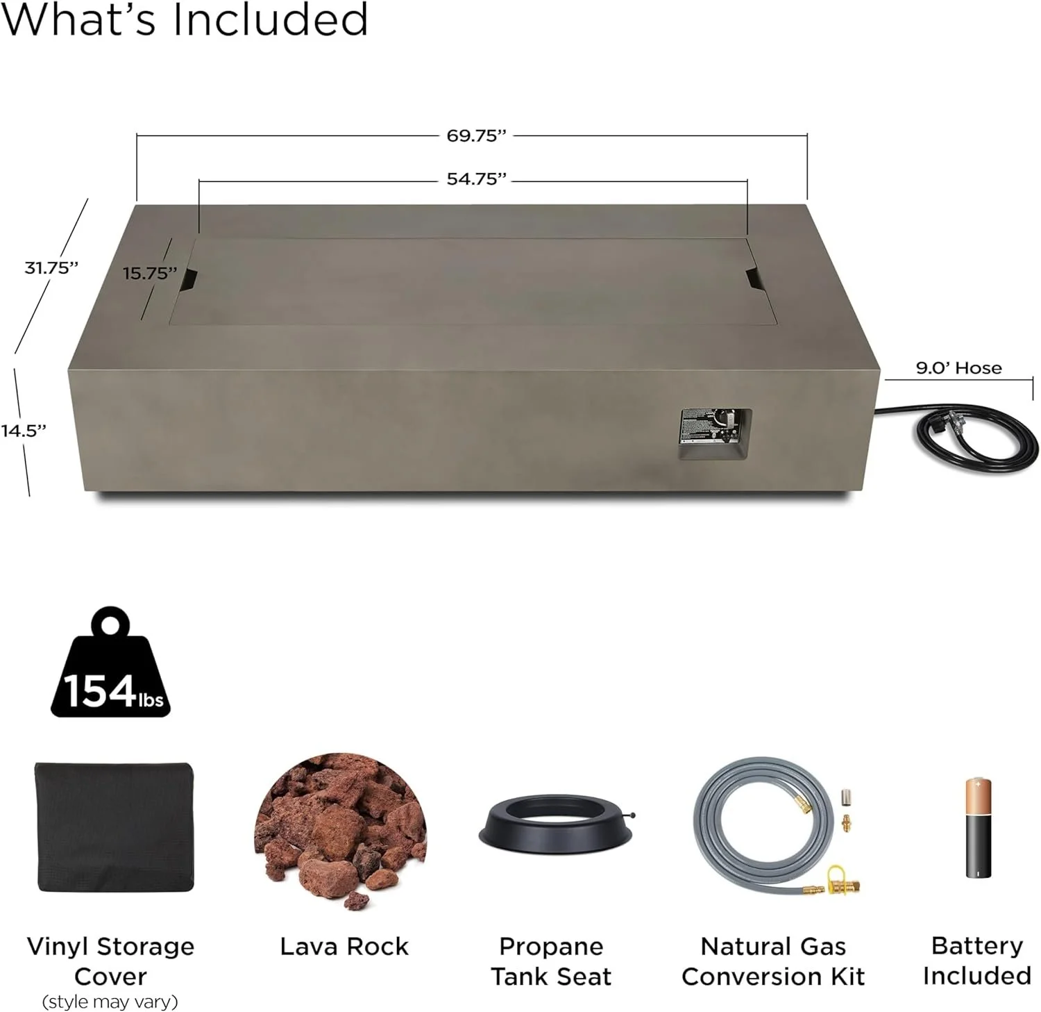 Real Flame Aegean 70″ Rectangle Propane Fire Table