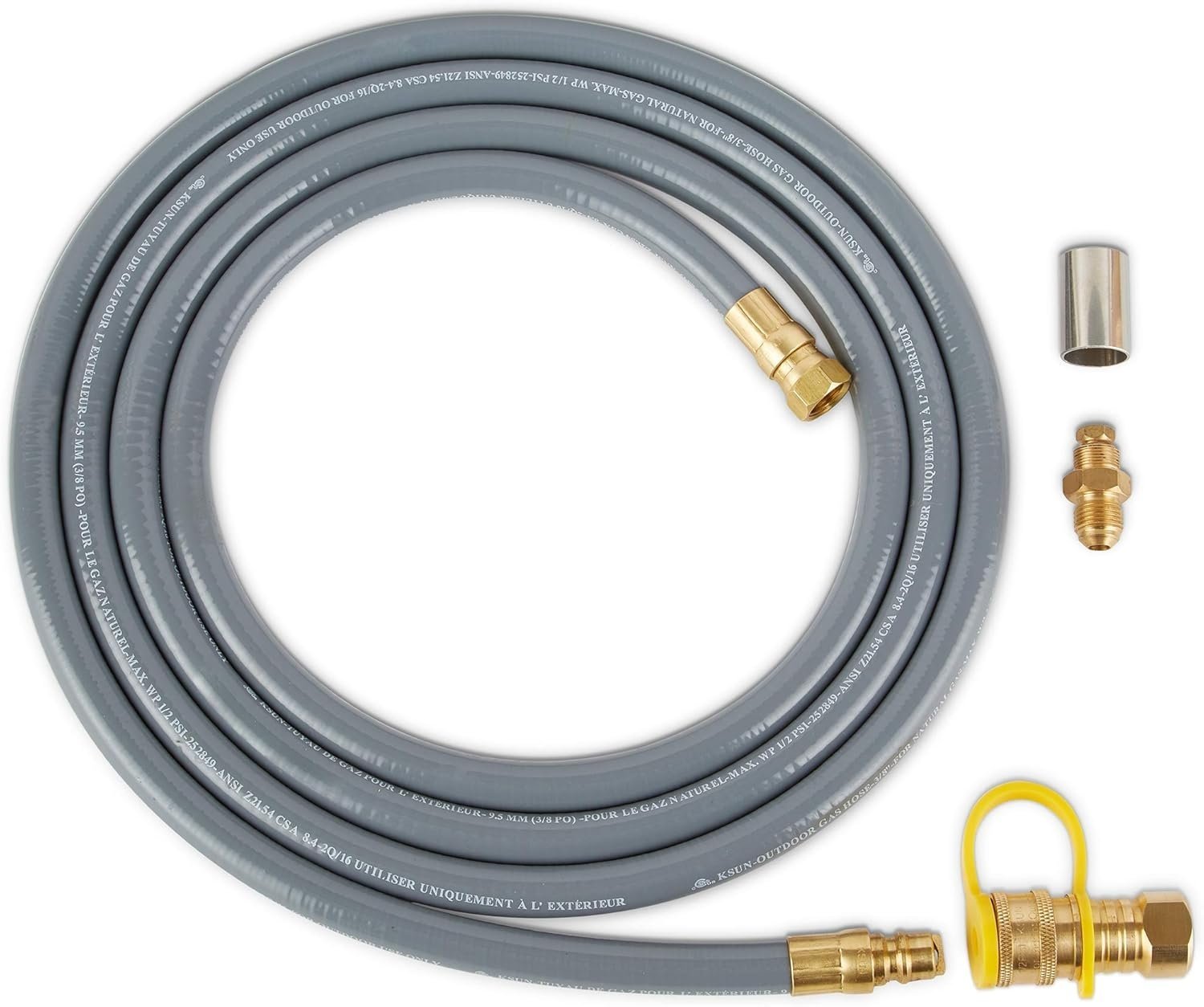 Propane or Natural Gas: Includes a 9-foot LP hose with a regulator, and a natural gas conversion kit with a 10-foot NG hose and quick-connect fitting. Can be converted to natural gas by a certified gas technician.