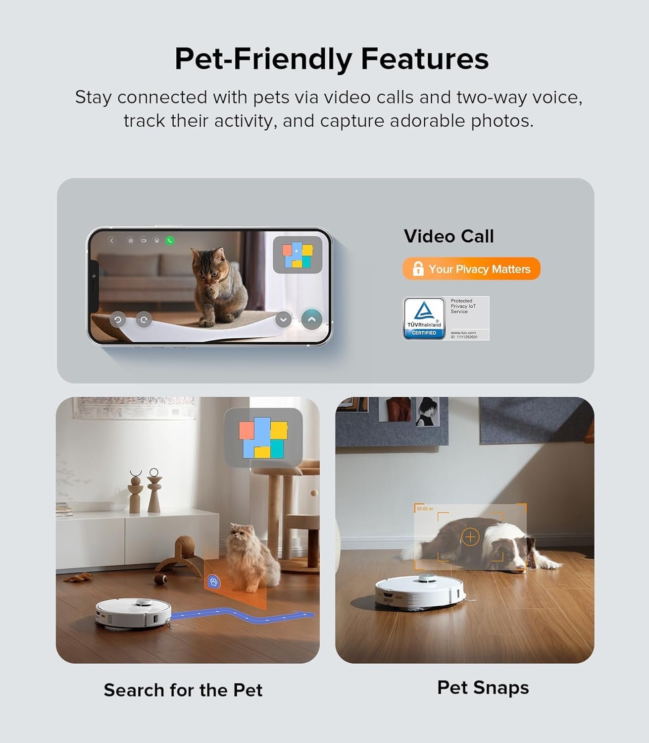 Smart Obstacle Avoidance and AI-driven cleaning: Precisely navigate and avoid obstacles with Reactive Tech Obstacle Avoidance and PreciSense LiDAR Navigation. Within several seconds, it accurately avoids obstacles and manages the most efficient path to achieve thorough cleaning.