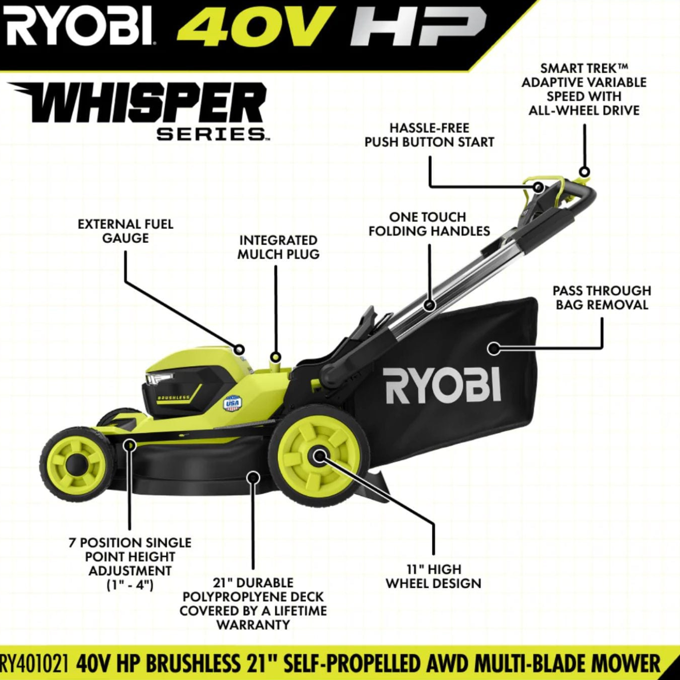 RYOBI 40V HP Brushless Whisper Series 21″