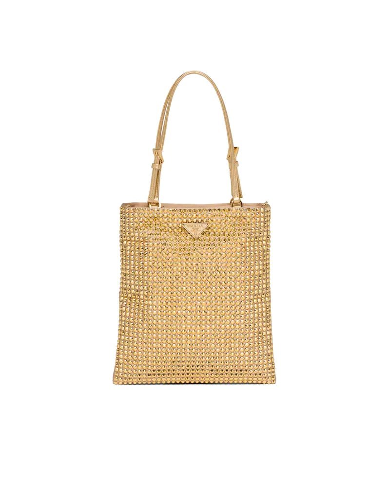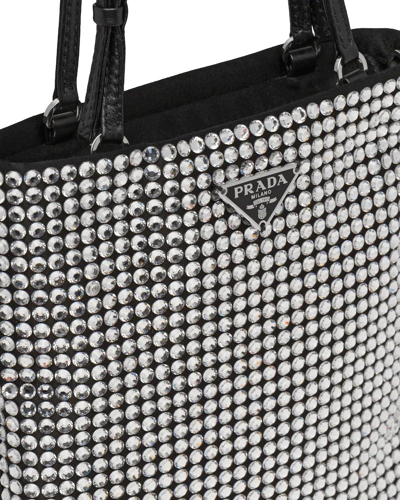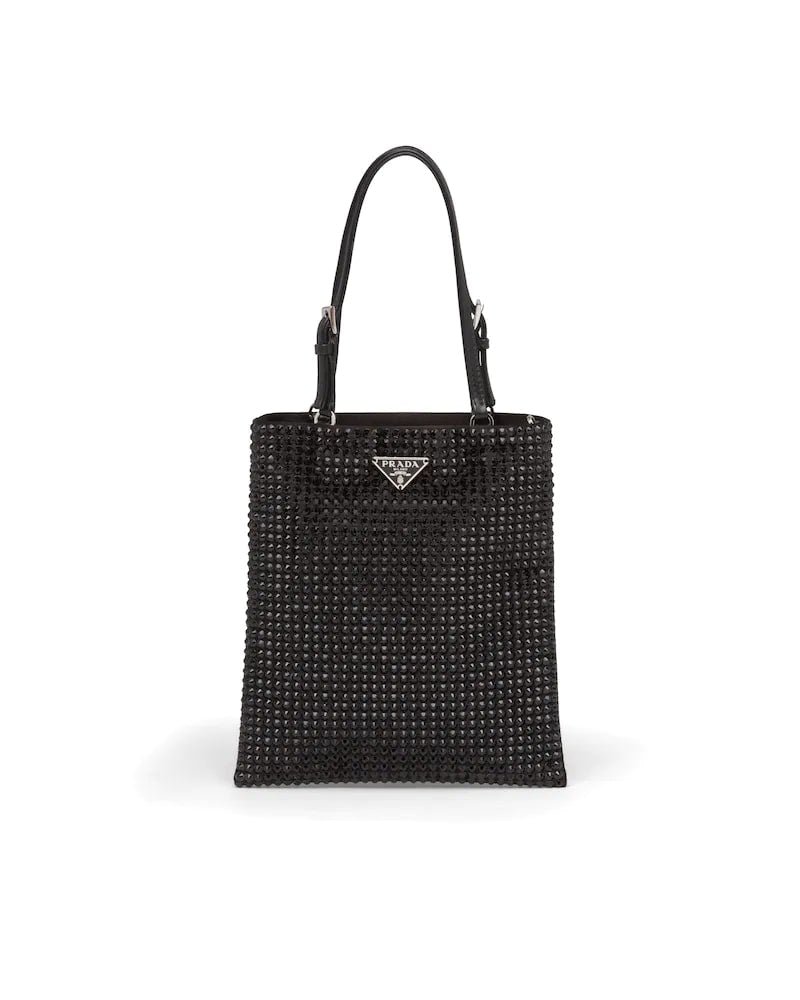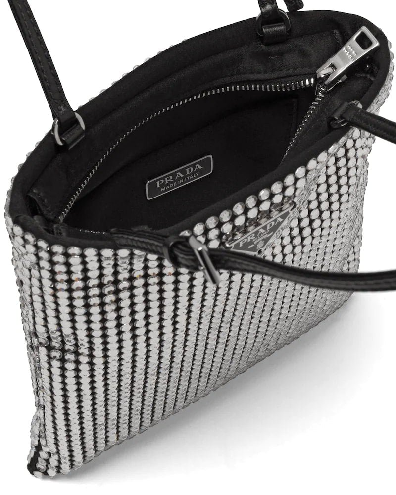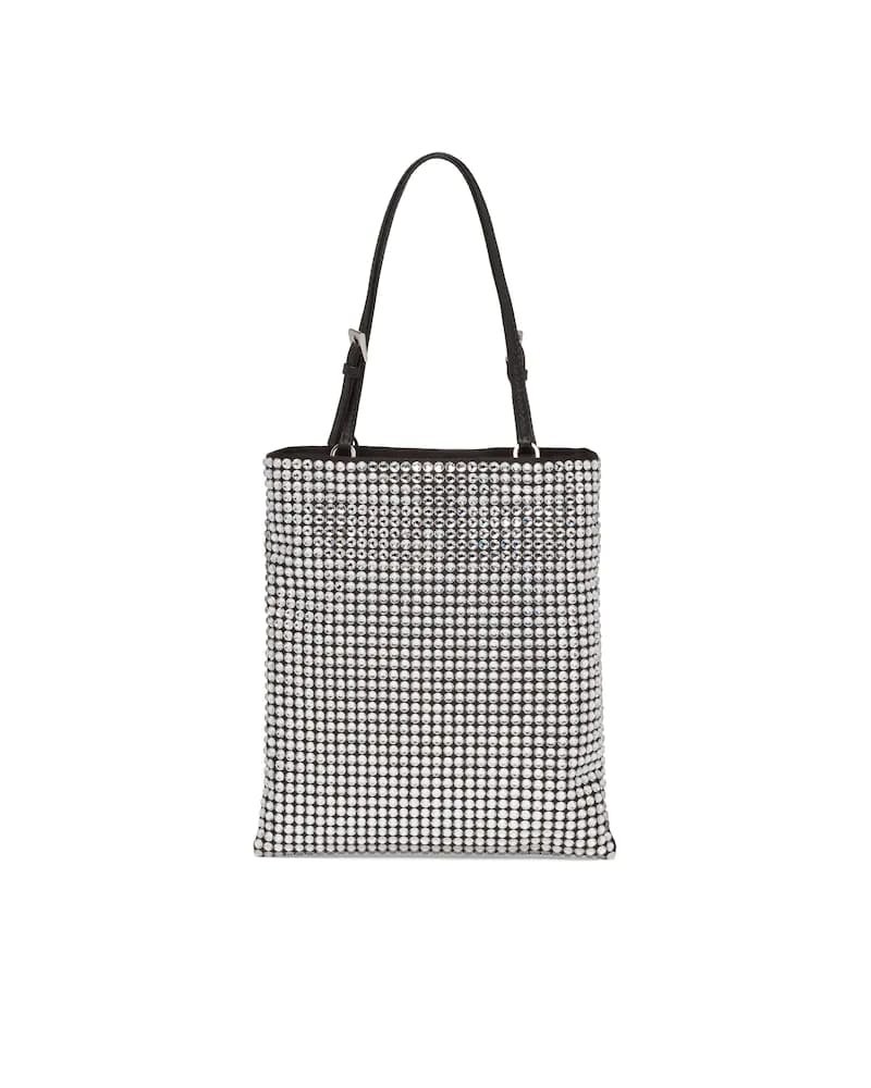 This nylon bag with all-over crystal embellishment stands out for its modern, feminine design.