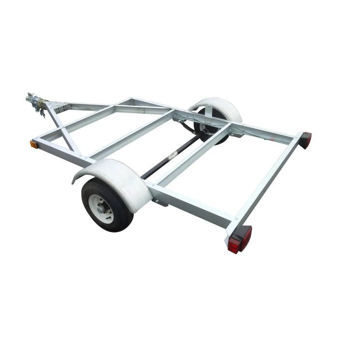 The Stirling 4ft. x 6ft. kit trailer is a customizable single-axle trailer that will fit your hauling needs. The Galvalume construction offers a scratch and corrosion-resistant finish that is long-lasting and maintenance-free. E-Z lube hubs allow for ease of maintenance and added bearing protection. The V-tongue adds increased support and stability when traveling. The kit comes complete with all the wiring and lighting required for the trailer, a 1-7/8” coupler, safety chains with rated S-hooks and safety latch, eight stake pockets and licensing documentation needed to register the trailer. Conveniently shipped in 3 boxes the trailer can be easily assembled using basic tools. Once complete, the trailer can be customized to suit your requirements as a flatbed or closed box trailer (material not included), customization plans are included with the assembly instructions. The Stirling 4’ x 6’ kit trailer meets all DOT requirements and is ready for the road as soon as you are!