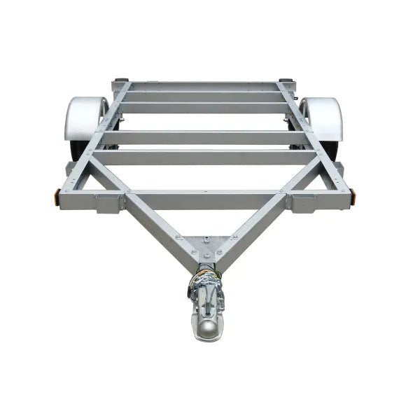 The Stirling 4ft. x 8ft. kit trailer is a customizable single-axle trailer that will fit your hauling needs. The Galvalume construction offers a scratch and corrosion-resistant finish that is long-lasting and maintenance-free. E-Z lube hubs allow for ease of maintenance and added bearing protection. The V-tongue adds increased support and stability when traveling. The kit comes complete with all the wiring and lighting required for the trailer, a 1-7/8” coupler, safety chains with rated S-hooks and safety latch, eight stake pockets and licensing documentation needed to register the trailer. Conveniently shipped in 3 boxes the trailer can be easily assembled using basic tools. Once complete, the trailer can be customized to suit your requirements as a flatbed or closed box trailer (material not included), customization plans are included with the assembly instructions. The Stirling 4’ x 8’ kit trailer meets all DOT requirements and is ready for the road as soon as you are!