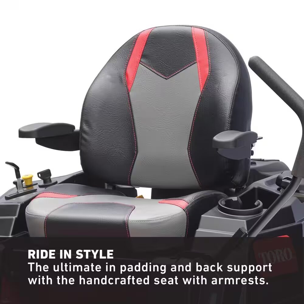 Ride in style, ride your Toro in style with a handcrafted high-back seat with arm rests that provides the ultimate in padding and back support
