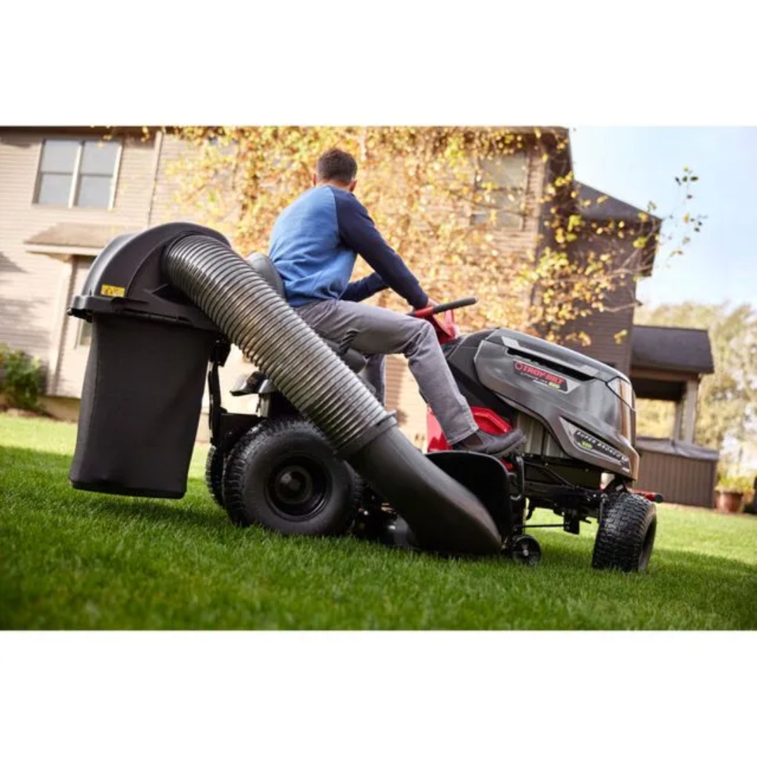 Skip the gas cans and oil changes with the battery-powered Troy-Bilt Super Bronco 46E XP riding mower. The electric brushless motor provides the power to mow up to 2 acres of grass with up to 1.5-hours of runtime per charge. A large Step-Thru frame is designed for easy on-and-off access and an adjustable high-back seat provides comfort. The rear hitch allows for quick attachment of tow-behind accessories, like dump carts, spreaders or aerators (attachments sold separately). Regardless of what time of day you need to mow, the battery power provides a noise reduction of up to 65% quieter than gas.