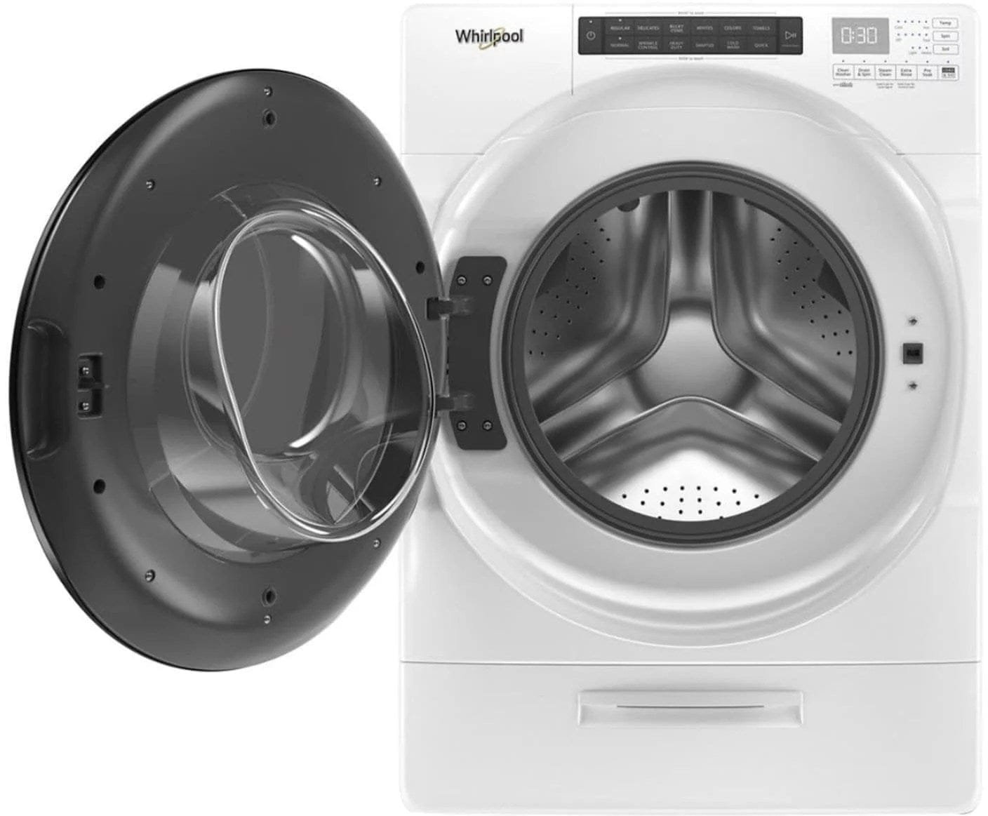 Skip adding detergent to every load with a Whirlpool closet-depth front load washing machine. The Load & Go XL dispenser holds enough laundry soap for 40 loads and automatically adds the right amount. Intuitive Controls let you create customized washing machine cycles, and the ENERGY STAR certified front load washer will even help you save on your utility bills.