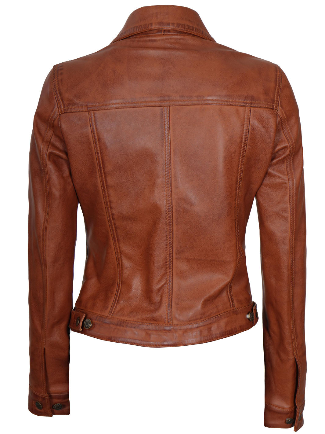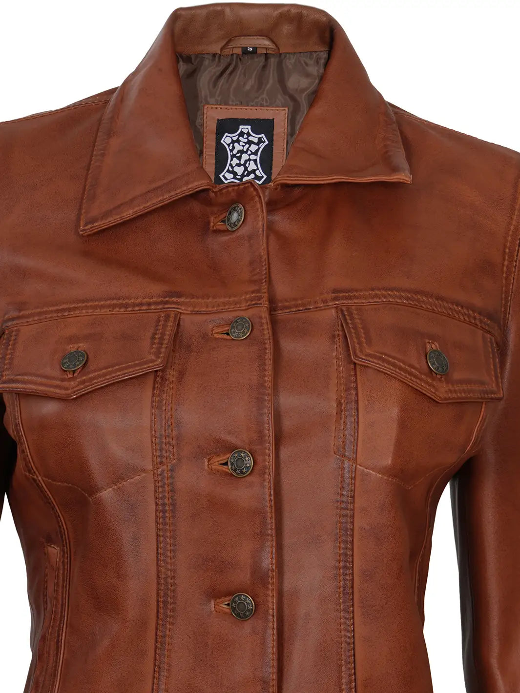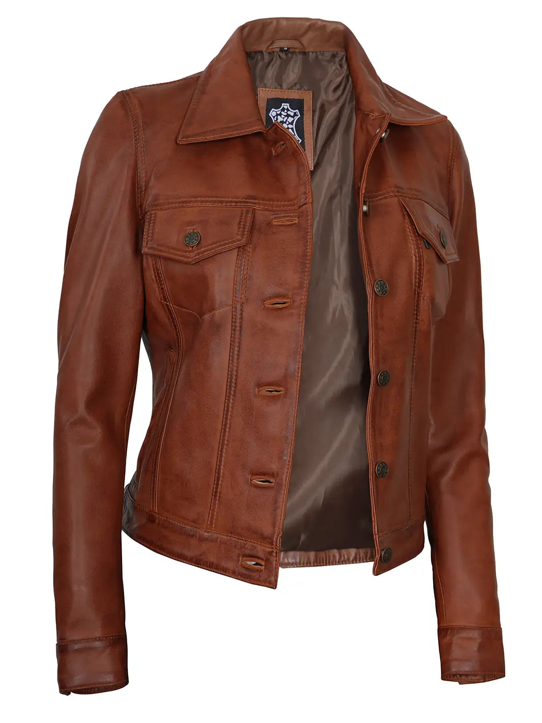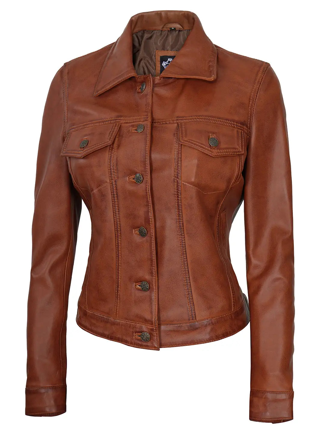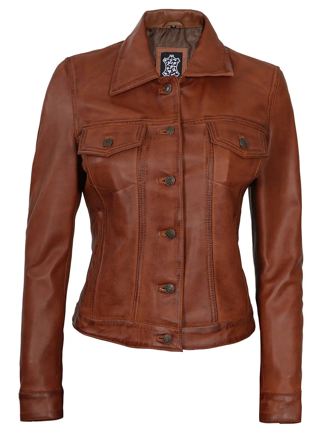 Fernando Women Cognac Brown Leather Trucker Jacket