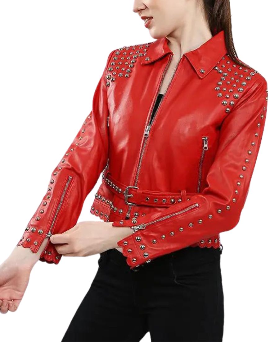 Bianca Studded Red Biker Leather Jacket