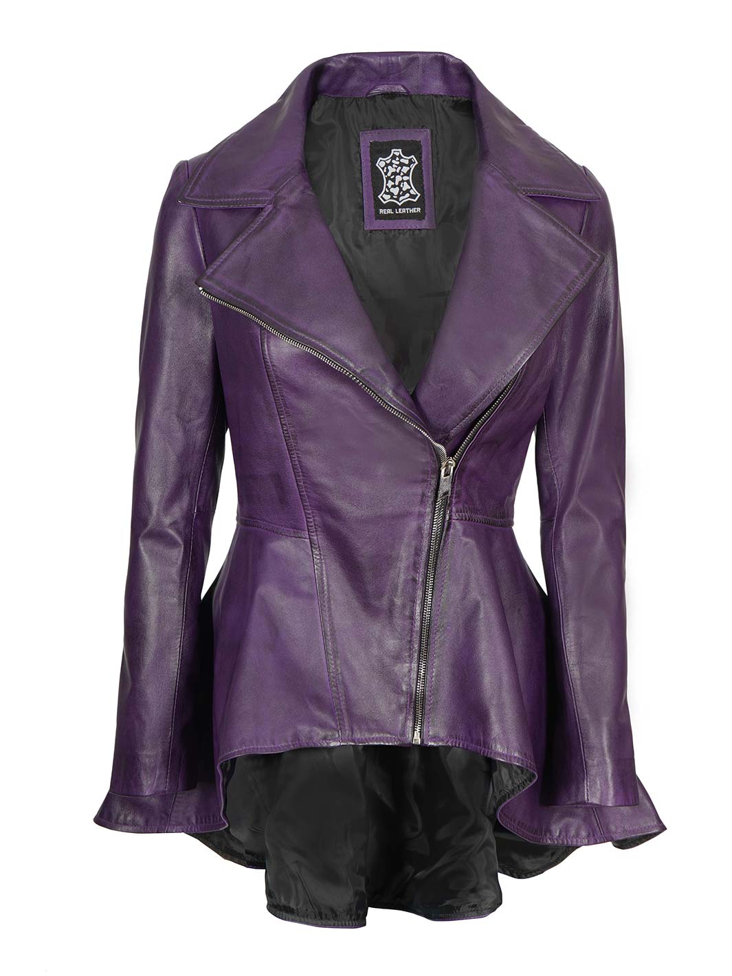 Womens Asymmetrical Peplum Purple Leather Jacket