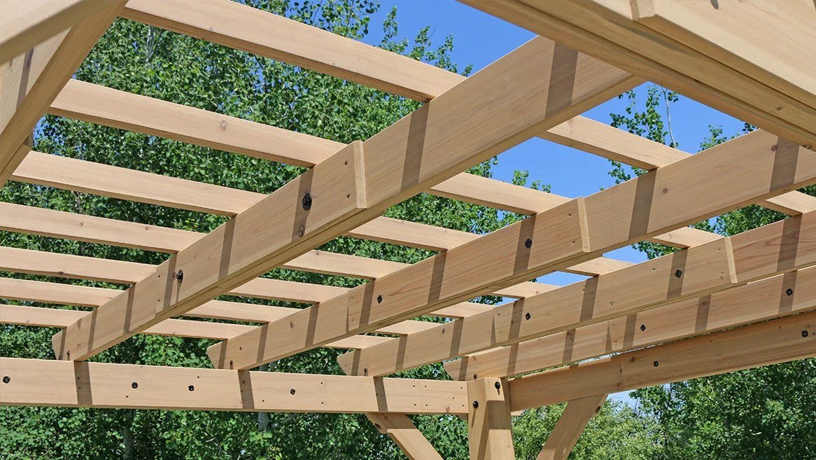 This unique design will become an instant and beautiful focal point in your backyard. The multilevel roof structure has profiled beam and trellis ends, and the crisscross trellis joists that add both strength and style. Like all Yardistry products, this pergola is built with premium Cedar lumber.